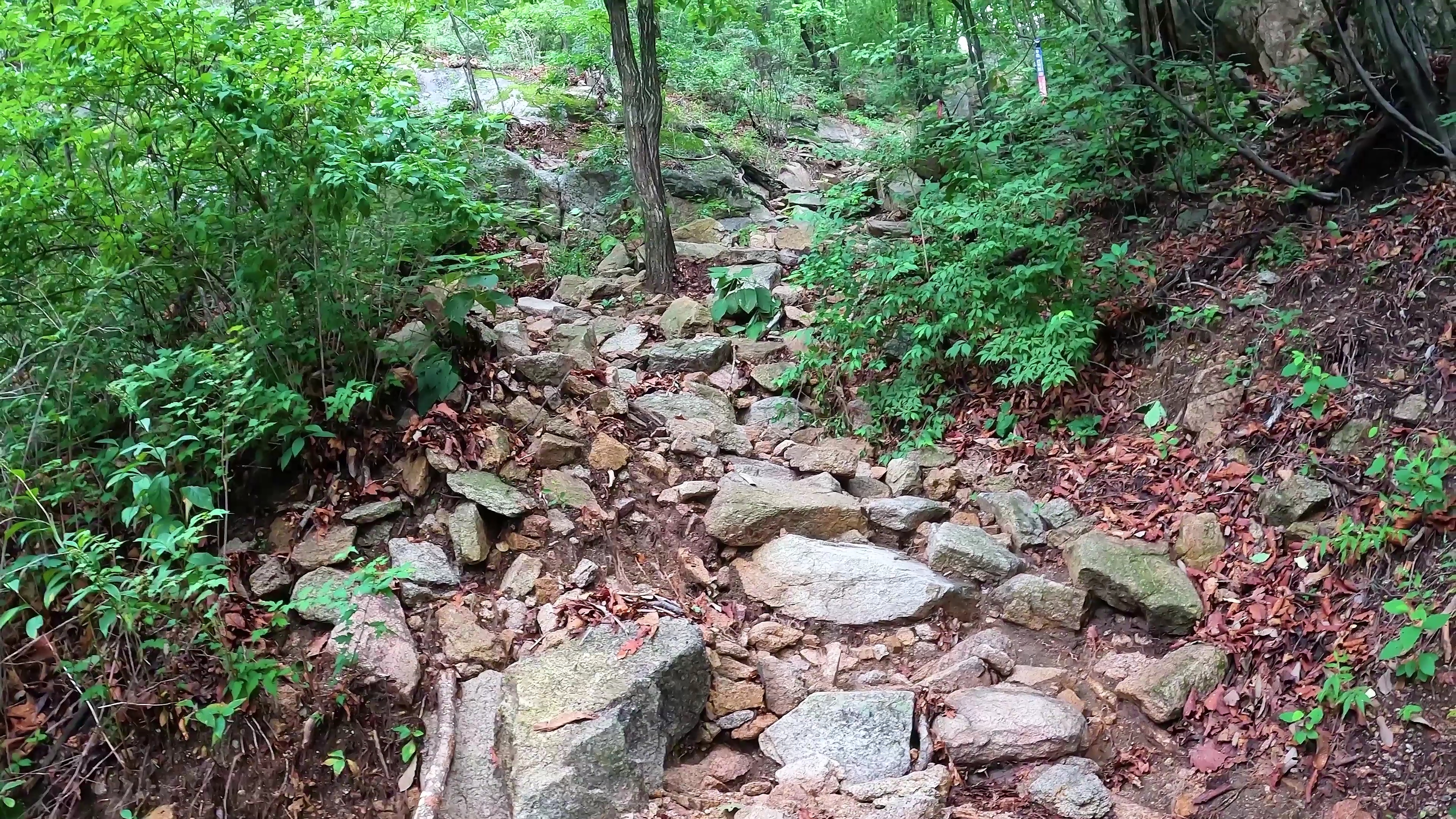 하산 길 여름에는 중간중간 산에서 내려오는 물길이 보이기도 합니다.