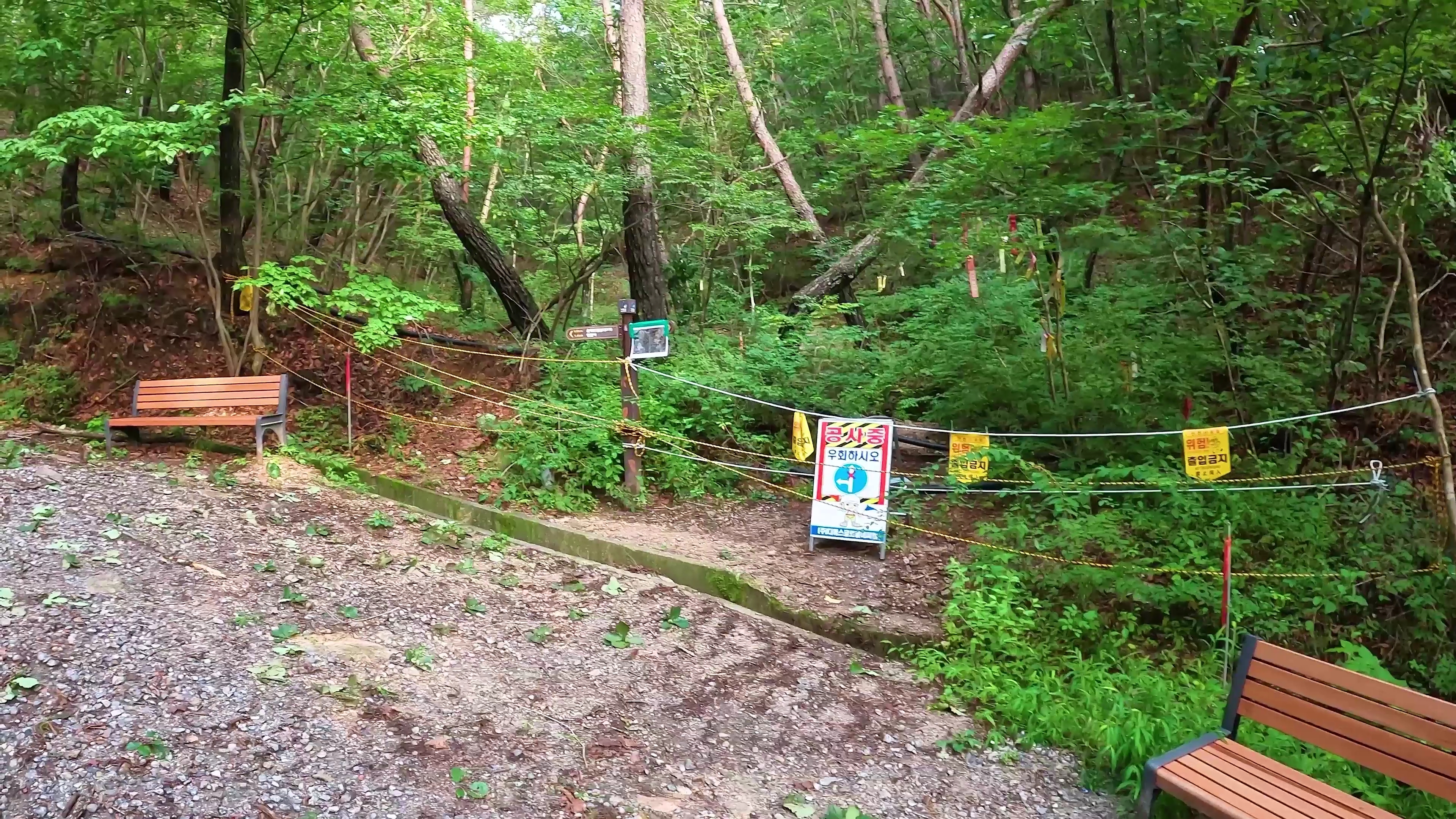 임도길에서 200미터를 오르면 우측으로 올라 능선 길 산행을 하면 되는데 현재는 공사 중입니다.