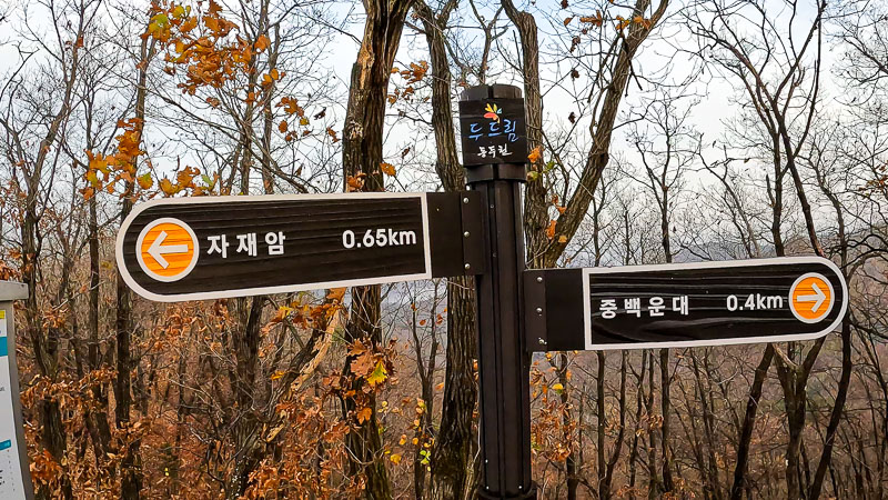 자재암을 둘러보고 이제 본격적인 산행을 시작한다. 자재암에서 하백운대 가는 길은 계단이 많고 경사가 급격한 등산로이다. 소요산은 587m의 높지 않은 산이지만 자재암에서 공주봉으로 오르는 코스와 하백운대 코스 모두 경사가 심한 편이다. 가을 낙엽이 많이 떨어져 미끄러운 부분도 많다. 안전에 대한 생각을 하며 천천히 걷는 방법이 최선의 방법이다.