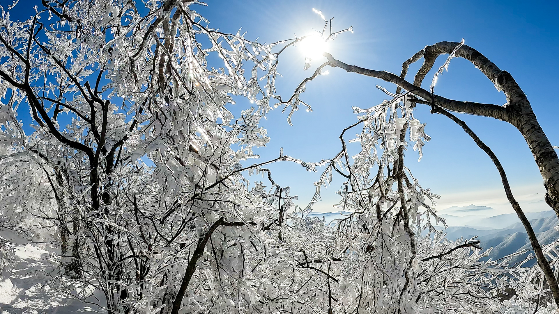 햇빛을 만난 빙화는 보석처럼 반짝이고 다이아몬드보다 투명하고 빛나는 눈꽃이었다.