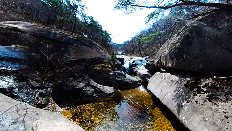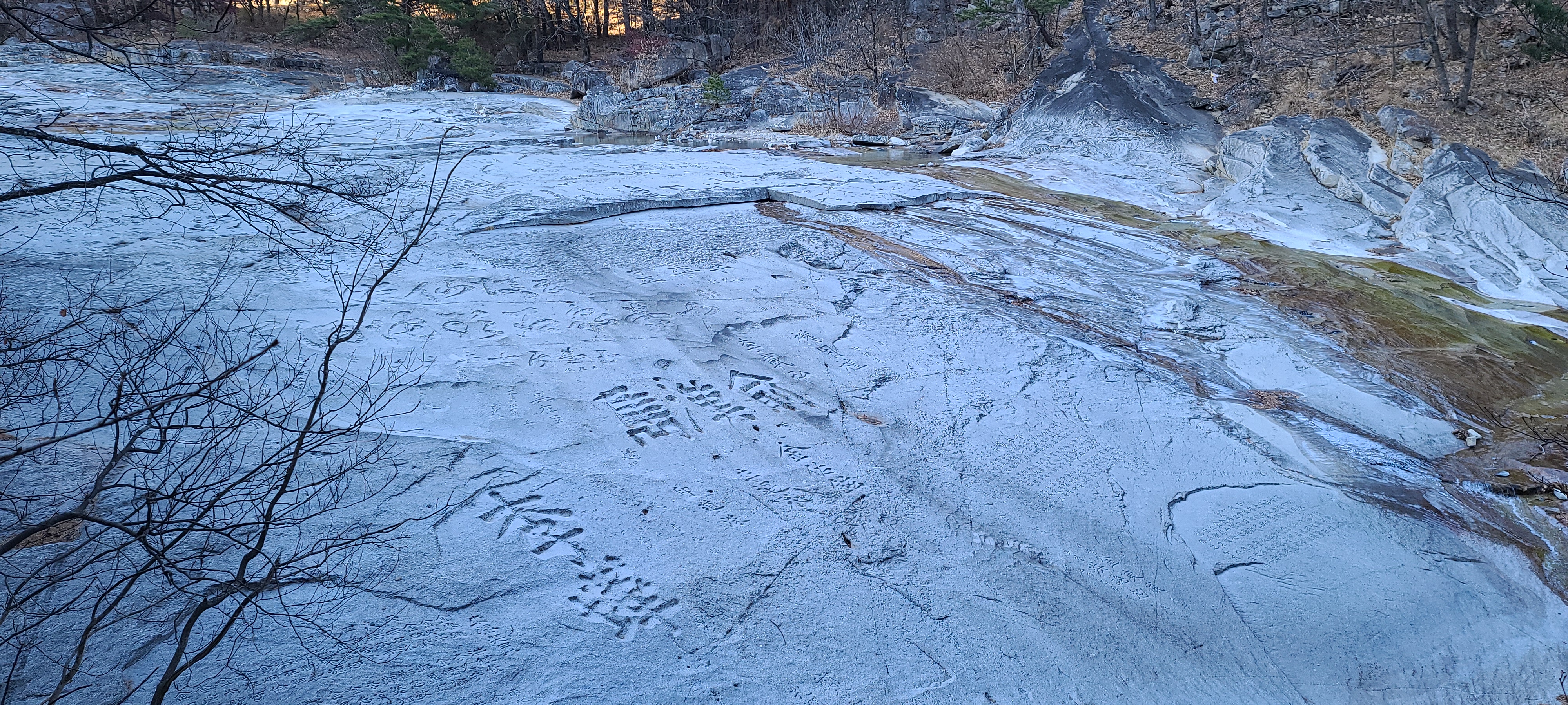 용이 승천한 자국이 남아 있다. 처음 이 부분을 보고 매우 신기했다. 정말 어떻게 저런 모습일까 생각을 했다. 정말 용이 승천을 한 내용처럼 보인다. 계곡 물속과 바위에 그 모습이 보인다.