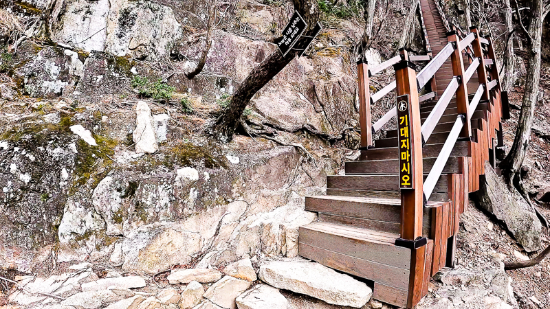 베틀바위 전망대를 오르는 마지막 계단이다. 계단과 계단이 높다. 코스가 짧아 어렵지 않다.