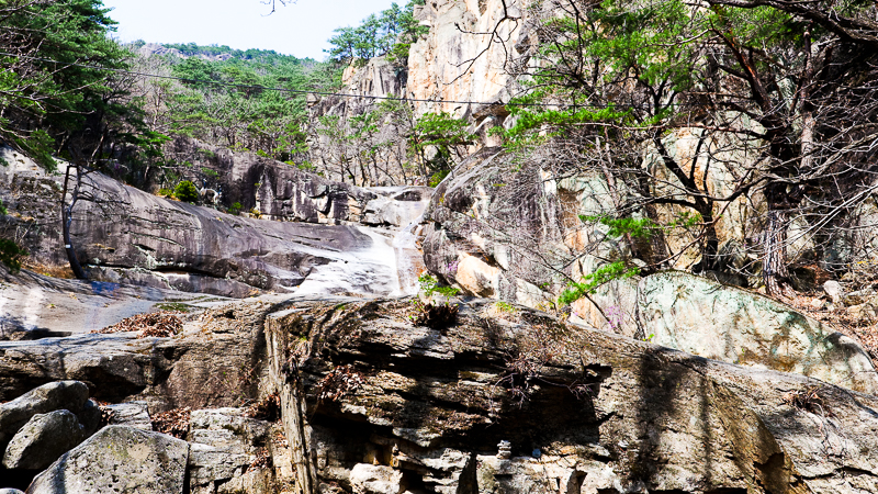 이제 하산을 시작한다. 하산을 하다 보면 쌍폭포를 만나게 된다. 오늘은 물 수량이 많아 참 멋스럽다.
