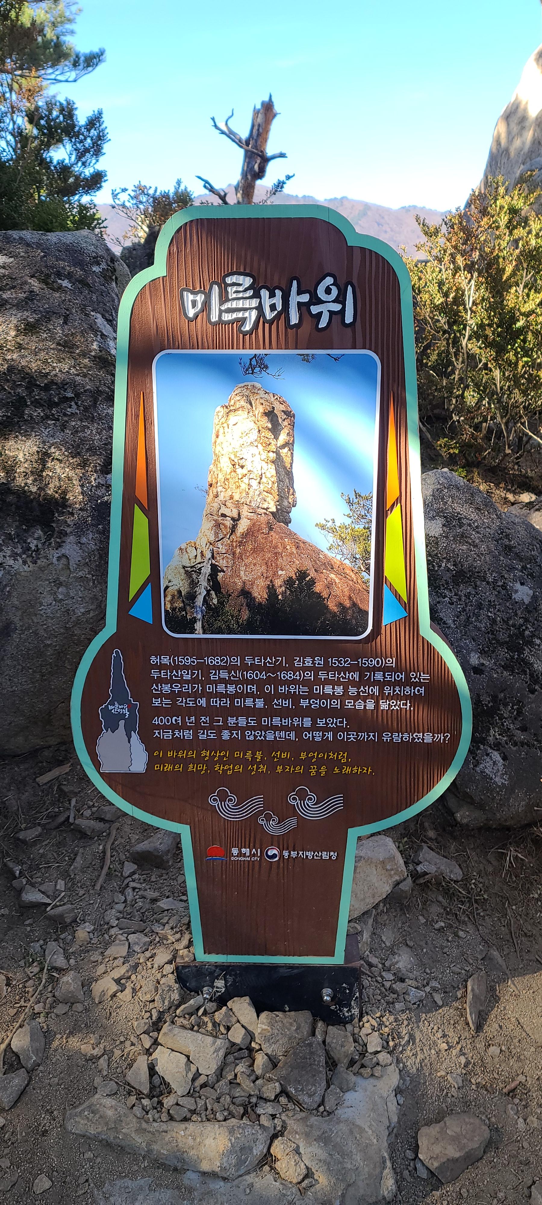 베틀바위 전망대에서 급격하게 오르막을 오르면 미륵바위를 만나게 된다.