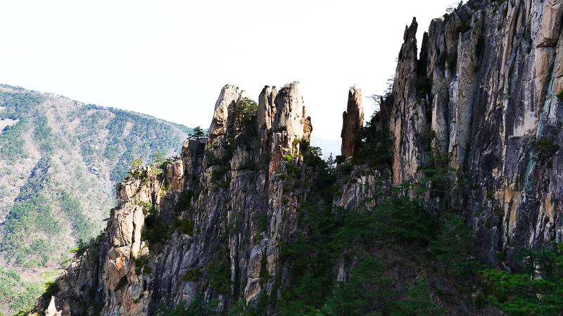 두타산 베틀바위, 마천루협곡을 걷는 길은 현실에 있는 그런 암릉구간이 아닌 이국적이고 색다른 모습들을 만나게 된다. 두타산의 사진 한 장을 보고 약 8년 전 처음 찾았다. 그 사진은 두타산성이었다. 그 외 정보와 난이도를 생각지 않고 무릉계곡 주차장에서 두타산 정상 등산은 매우 힘들었다. 한 여름 산행으로 등산을 시작하고 처음으로 탈수 증상을 경험하기도 했다. 그만큼 난이도가 높다. 설악산 오색 혹은 지리산의 중산리 코스가 개인적으로 더 수월하다. 두타산이 그렇게 힘겹게만 생각되었는데 베틀바위 와 마천루 협곡이 개통되고 새로운 두타산을 만난 느낌이 들었다. 몇 번을 다시 가게 된다. 그만큼 베틀바위 와 협곡의 빼어난 모습에 반할 수밖에 없다. 그리고 이 코스의 소나무가 정말 아름답다. 등산을 할 때 멋진 조망과 함께 하는 것도 좋지만 나무들과 함께하는 것도 참 좋은 거 같다.