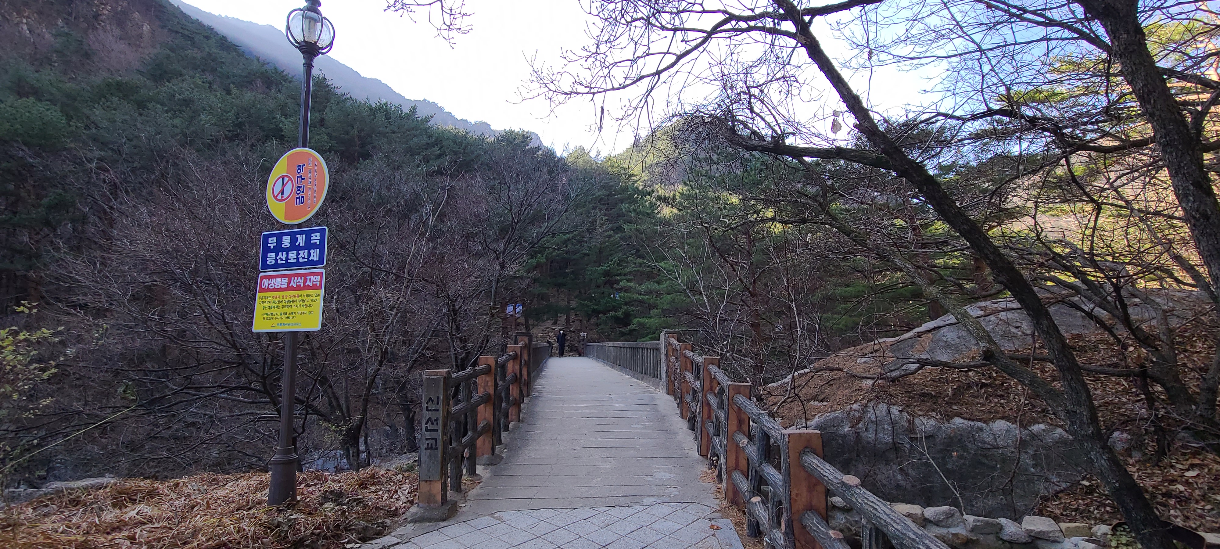 두타산 무릉계곡 주차장에서 무릉계곡으로 걸으면 상가 구역을 지나고 입장료를 납부하고 산행을 시작한다. 문화재관람료도 요즘 점차 무료로 바뀌고 있는데 조금 아쉬운 부분이 있다. 신선교를 지나면 두타산 배틀바위 등산이 시작된다. 이정표에 선택할 수 있는 다양한 코스가 표기되어 있다. 체력과 스타일에 맞게 선택하여 걸으면 된다.