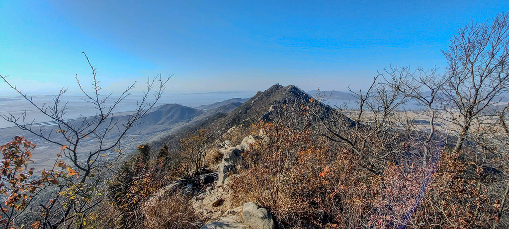 마니산 함허동천 코스의 가장 멋지고 아름다운 구간 암릉능선 구간이다. 서해바다를 바라보며 걷는 길이 참 좋다. 이 장소는 사실 일몰을 보기 위해 산행하는 부분으로 좋은 코스이다. 참성단 아래 헬기장에서 보는 일몰은 정말 아름답다.