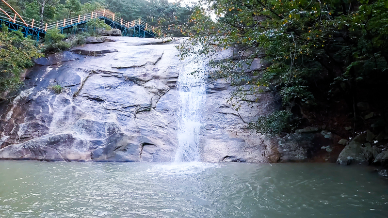 명성산 계곡의 물 색은 석회암 계곡의 특성상 물의 색이 다르다. 태백삼척의 통리협곡 미인폭포도 그렇다.