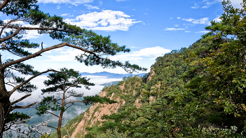 조금 더 이른 시간이었으면 더욱 진한 운해를 보았을 것 같다. 그래도 충분히 운해의 아름다움을 즐길 만하다. 운해와 암릉 그리고 나무의 조화로움은 어떤 글로도 표현이 안된다. 찰나의 순간에 보는 아름다움 같기도 하고 언제나 그 자리에 있던 멋짐을 보는 거 같기도 하다. 그림이다.