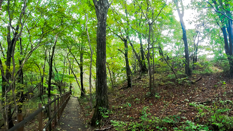정상바로 아래 부근 데크길이다. 가을 냄새가 많이 난다. 조금 아쉬운 건 단풍 잎이 많이 말라 있다는 것이다. 요즘 이상기후 및 온난화로 단풍이 점점 그 아름다움이 사라지고 있다. 마음 아픈 현실이다.