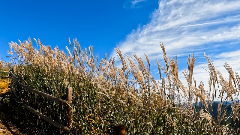 바람이 불어오면 억새가 좌우로 흩날리며 가을의 정취를 흠뻑 느끼게 만든다.