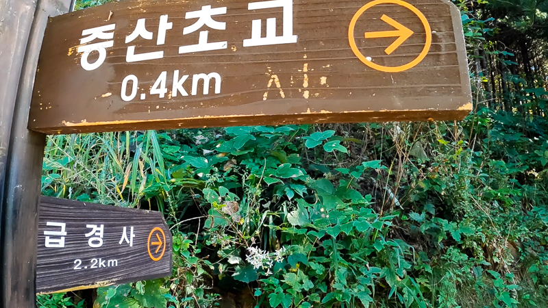 400m를 오르면 급경사 이정표가 있는데 사실 그렇게 어려운 코스가 아니다.