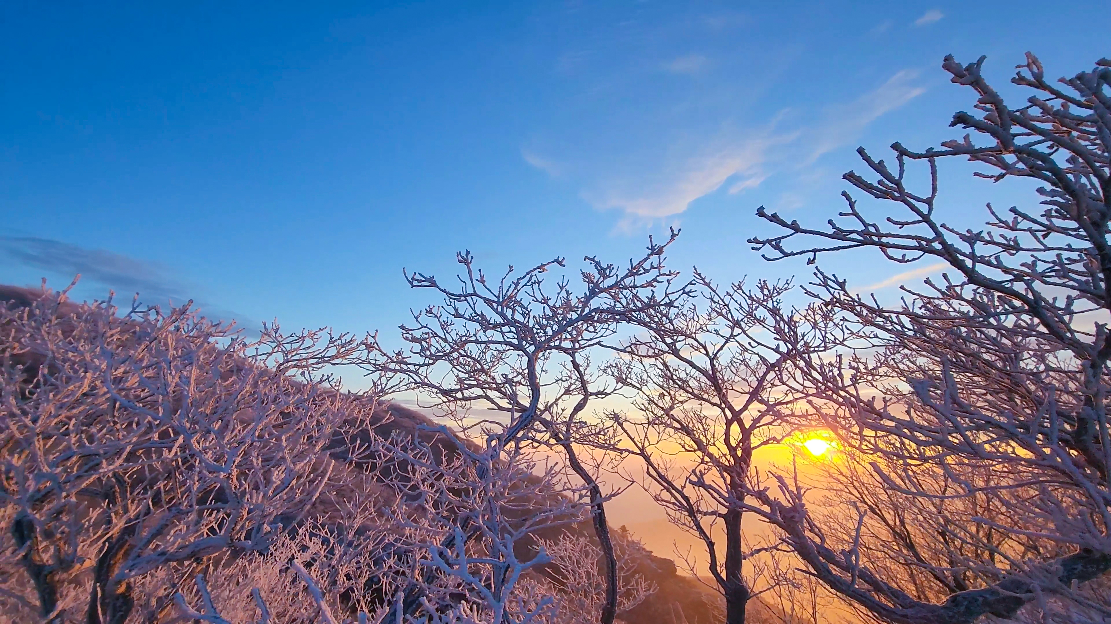 해님이 비친 상고대는 마치 보석들이 매달려 있는 듯이 아름다웠습니다.