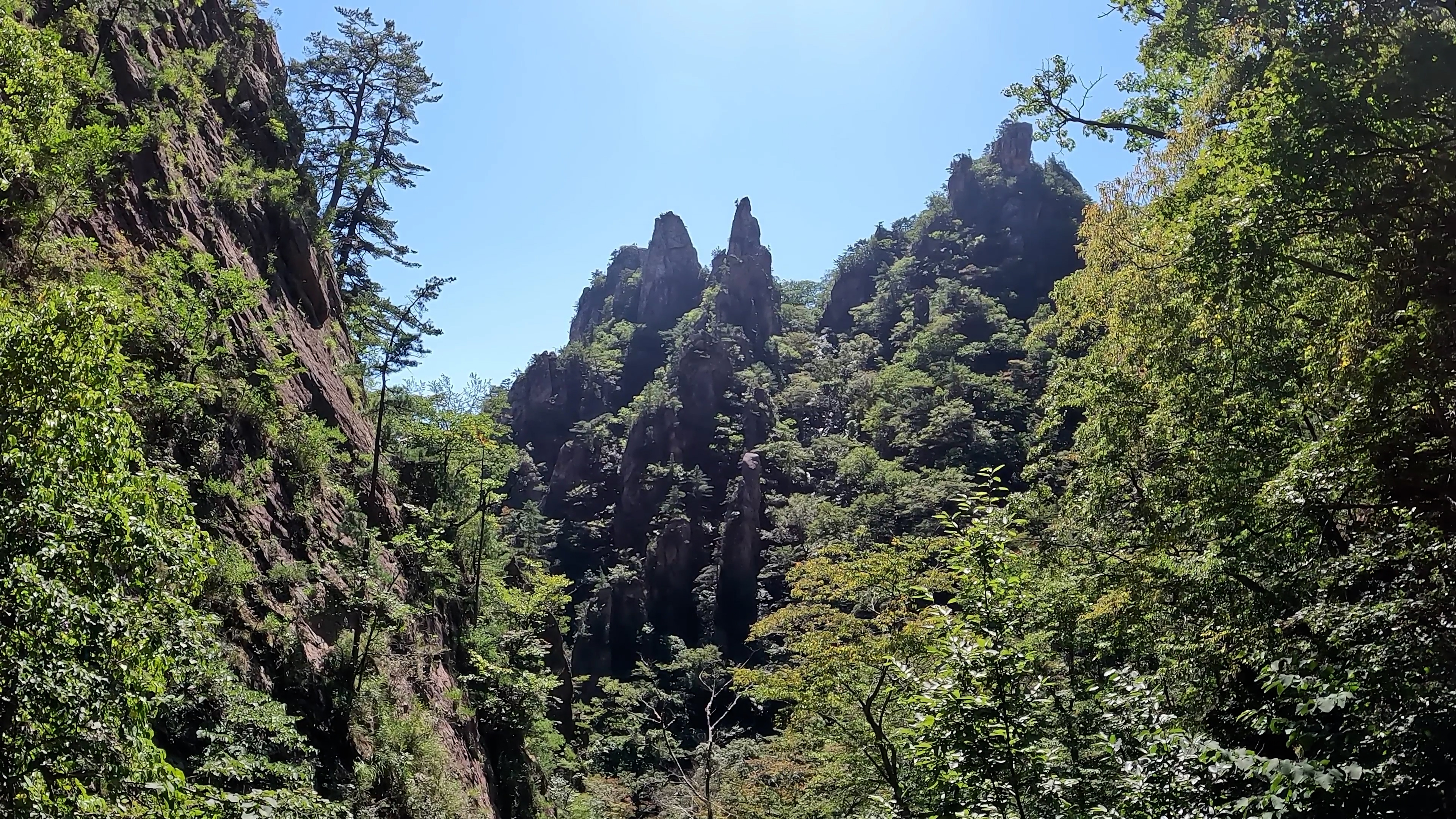 하산길에 등선폭포, 십이폭포와 기암괴석의 협곡을 걷게 되는데