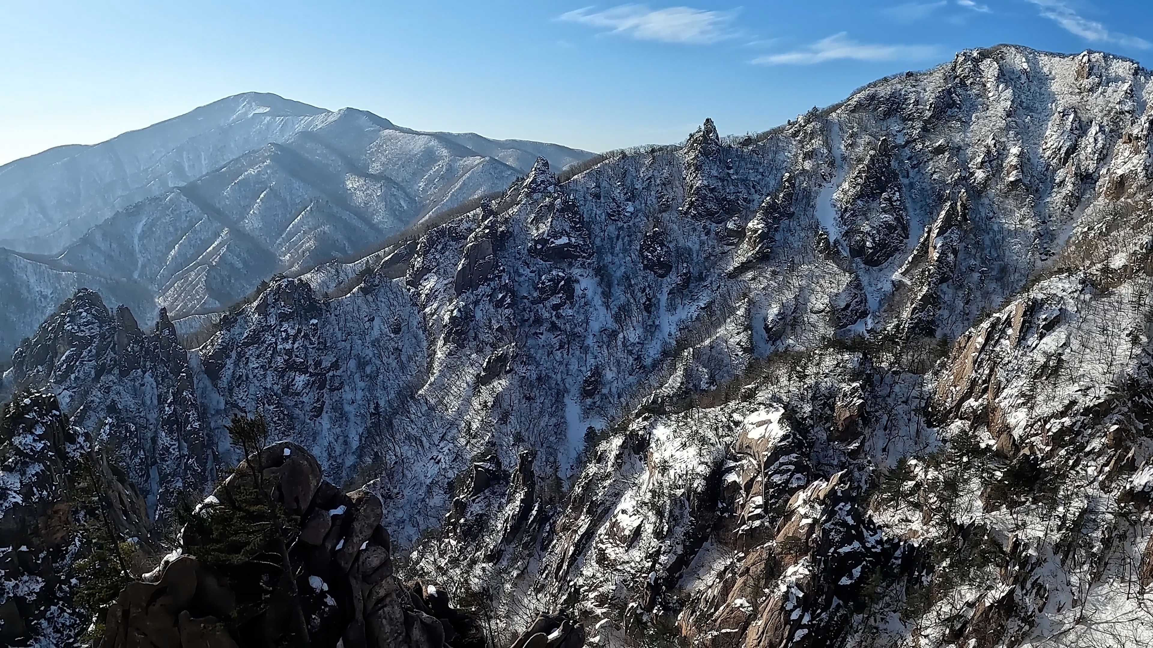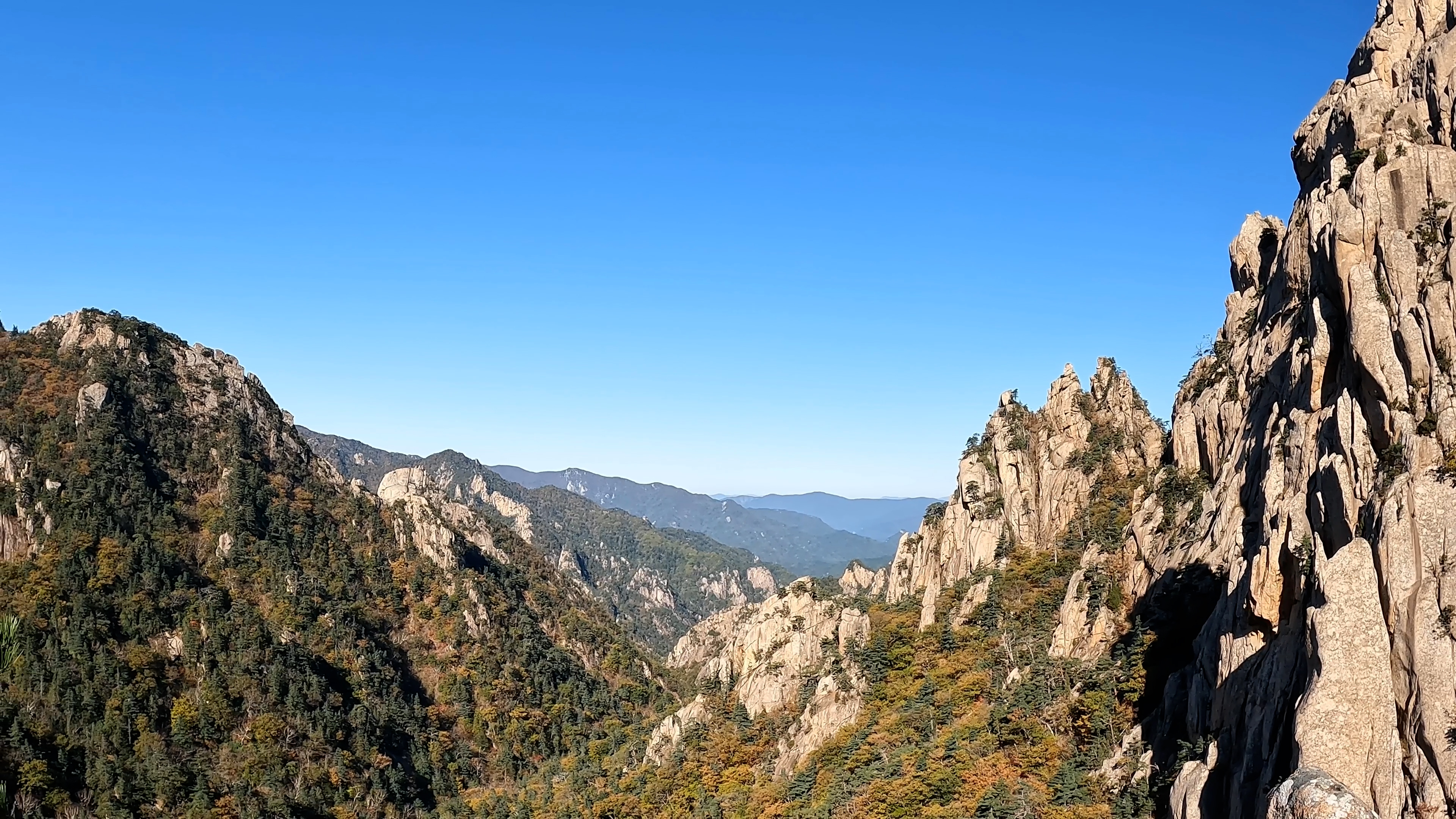 공룡의 이빨처럼 솟은 용아장성과 공룡의 등뼈처럼 보이는 공룡능선을 한 눈에 담을 수 있습니다.