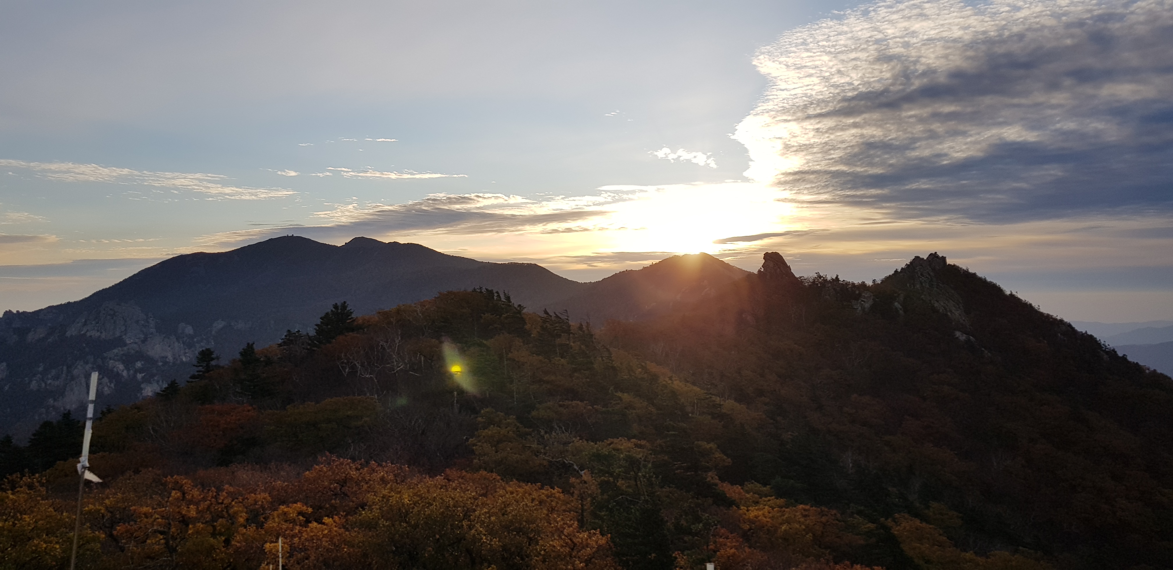 한계령휴게소에서 한계령삼거리를 지나 귀때기청봉 가기 전에 일출을 만나게 되었습니다.