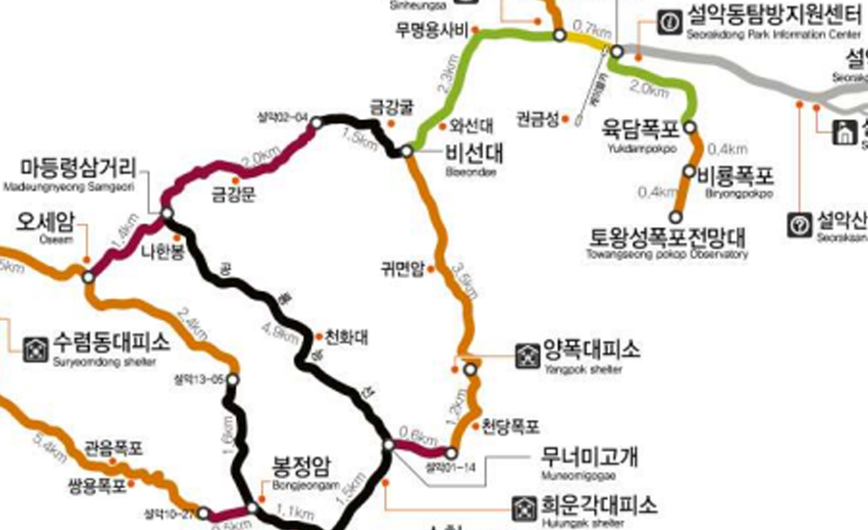 설악산의 대표적인 등산코스