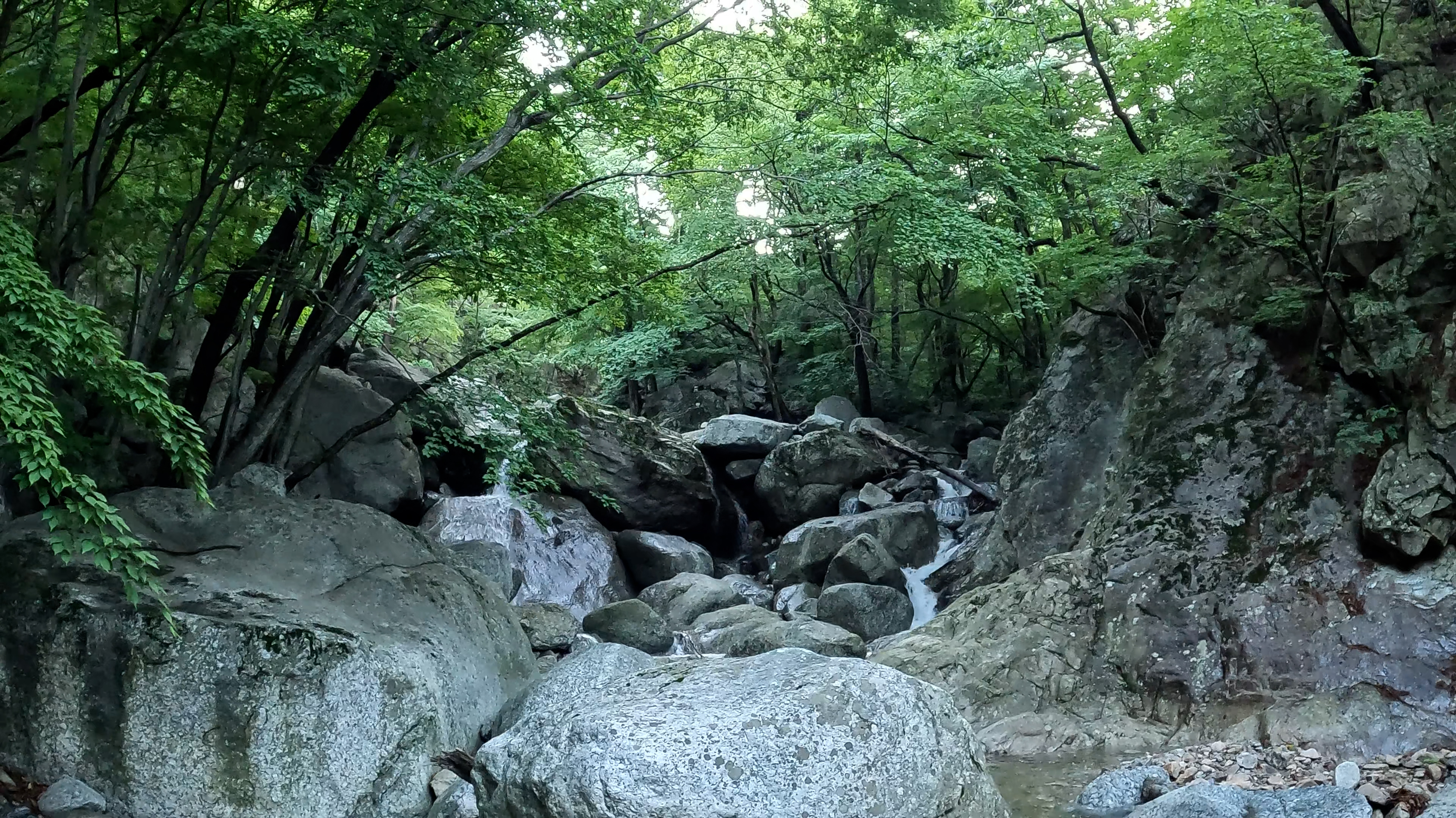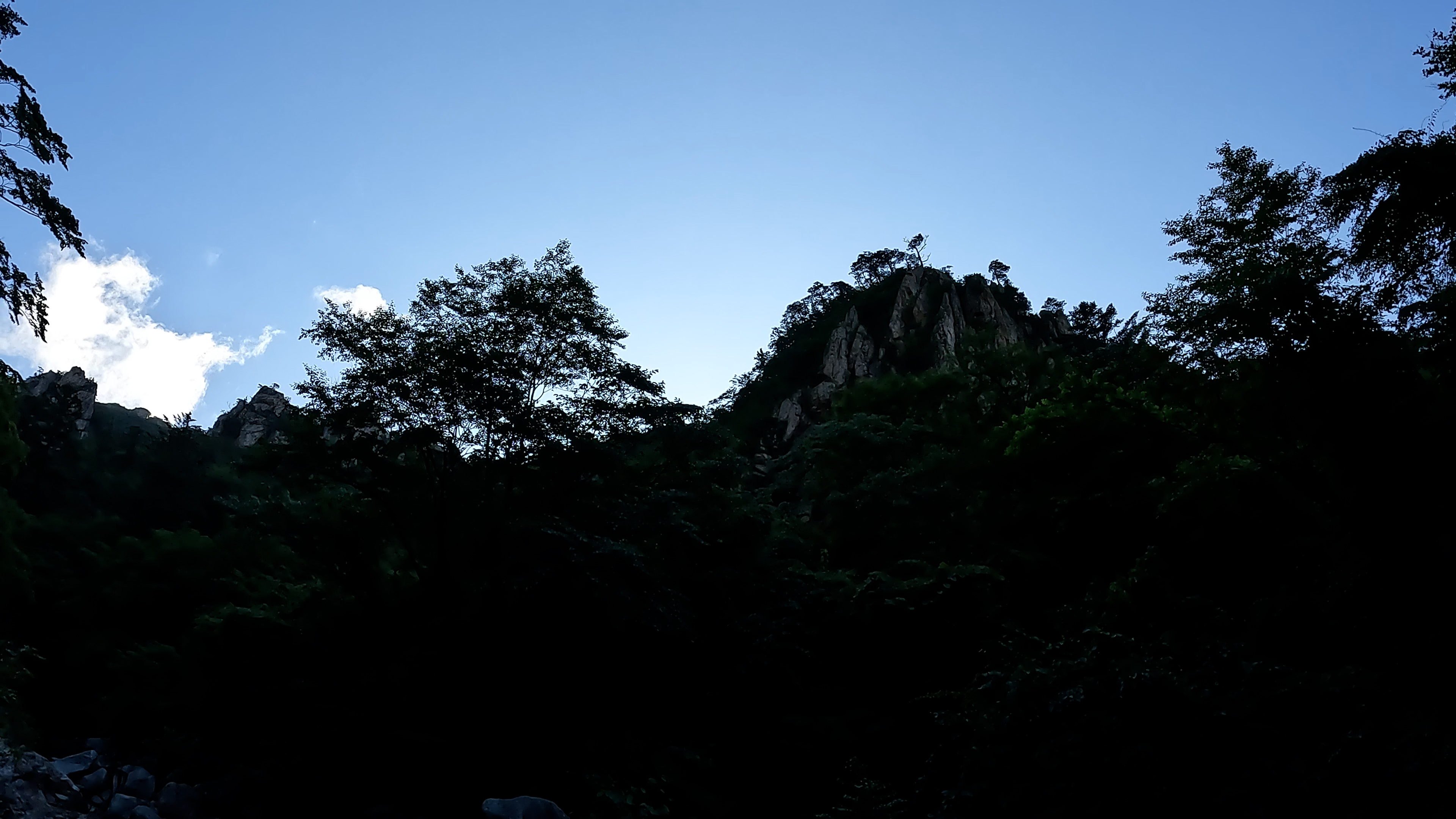 하늘은 맑은데 계곡에는 빛이 들어오지 않습니다. 저 혼자 있는 독주골은 조금 무서웠습니다.