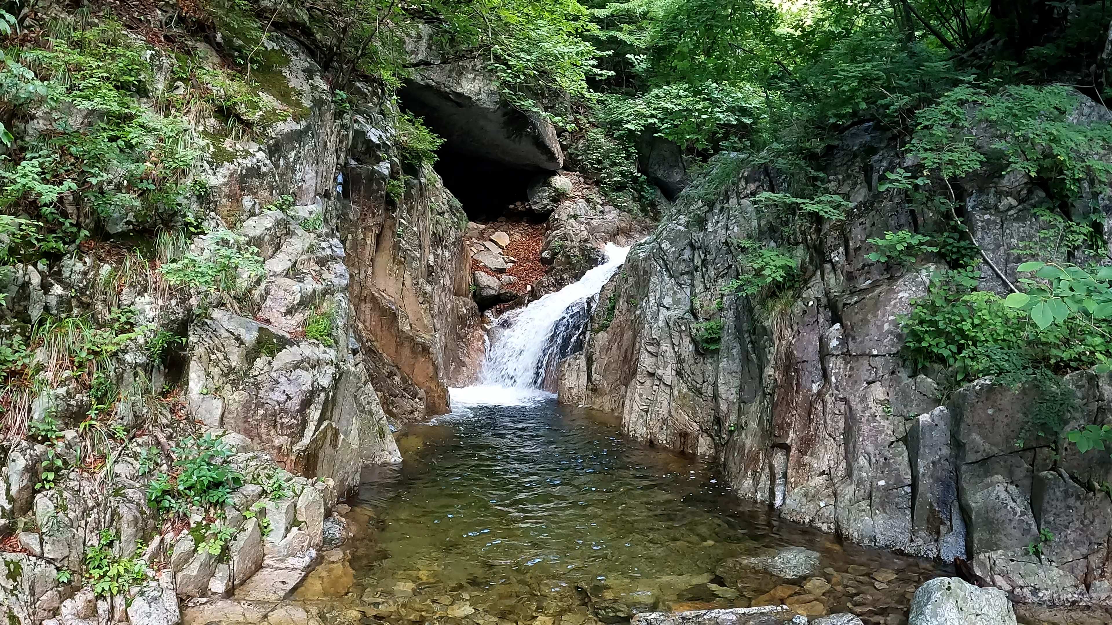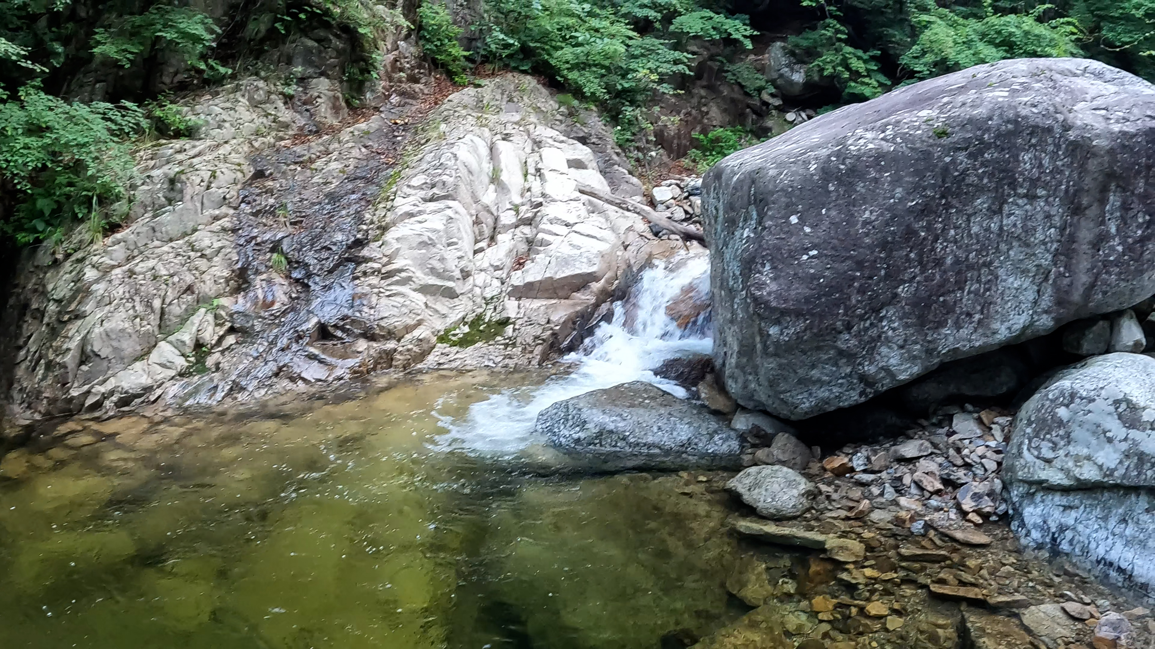그래도 계곡 치기의 맛은 더우면 시원하게 물에 손도 담그며 산행할 수 있다는 건데 사실 힘은 드는데 이 더위에 땀도 나지 않았습니다. 한기가 가끔 느껴질 정도로 시원했습니다.