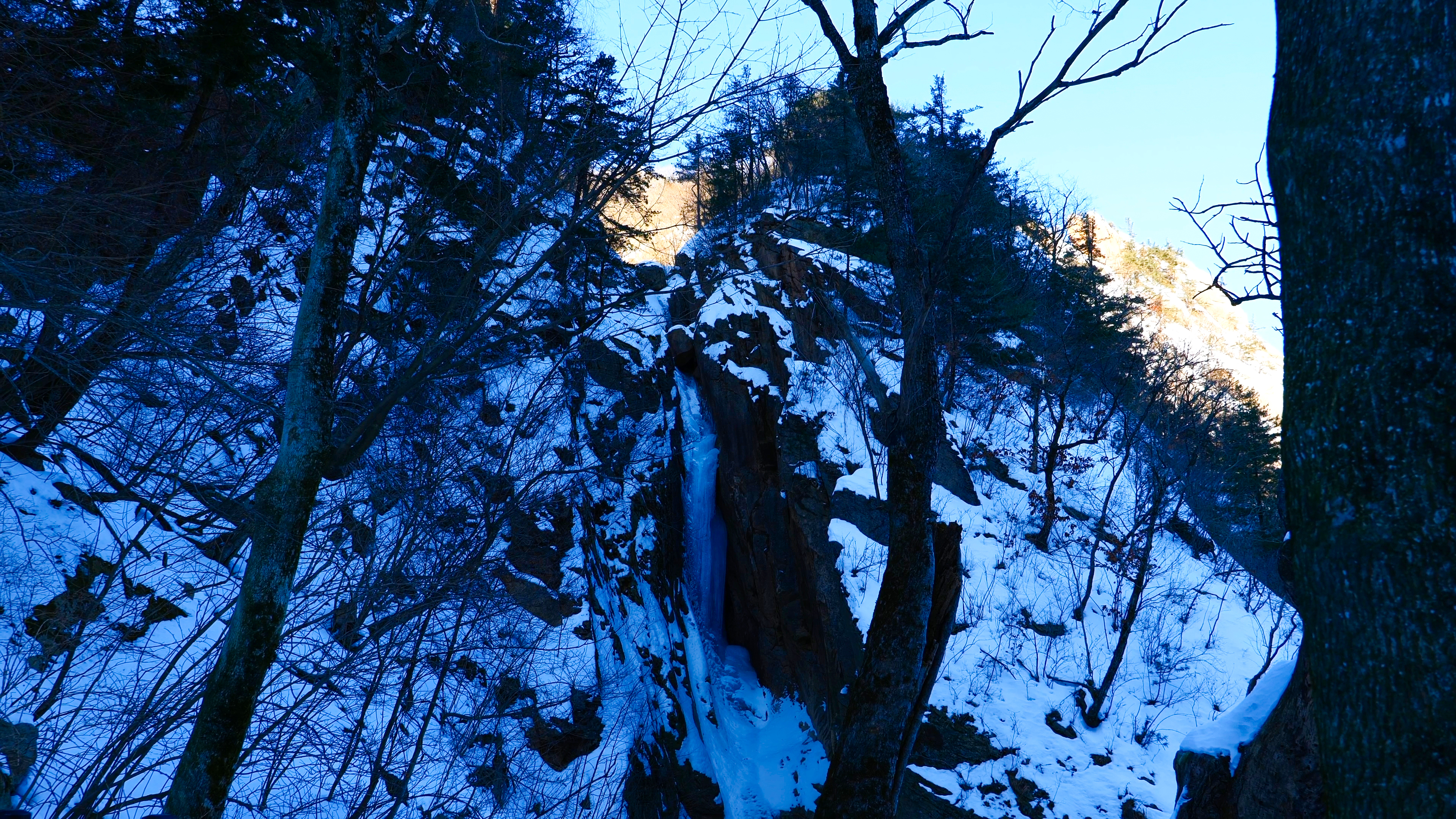 물이 흐르던 여심폭포가 얼어 있는데 그 모습 또한 장관이었습니다.