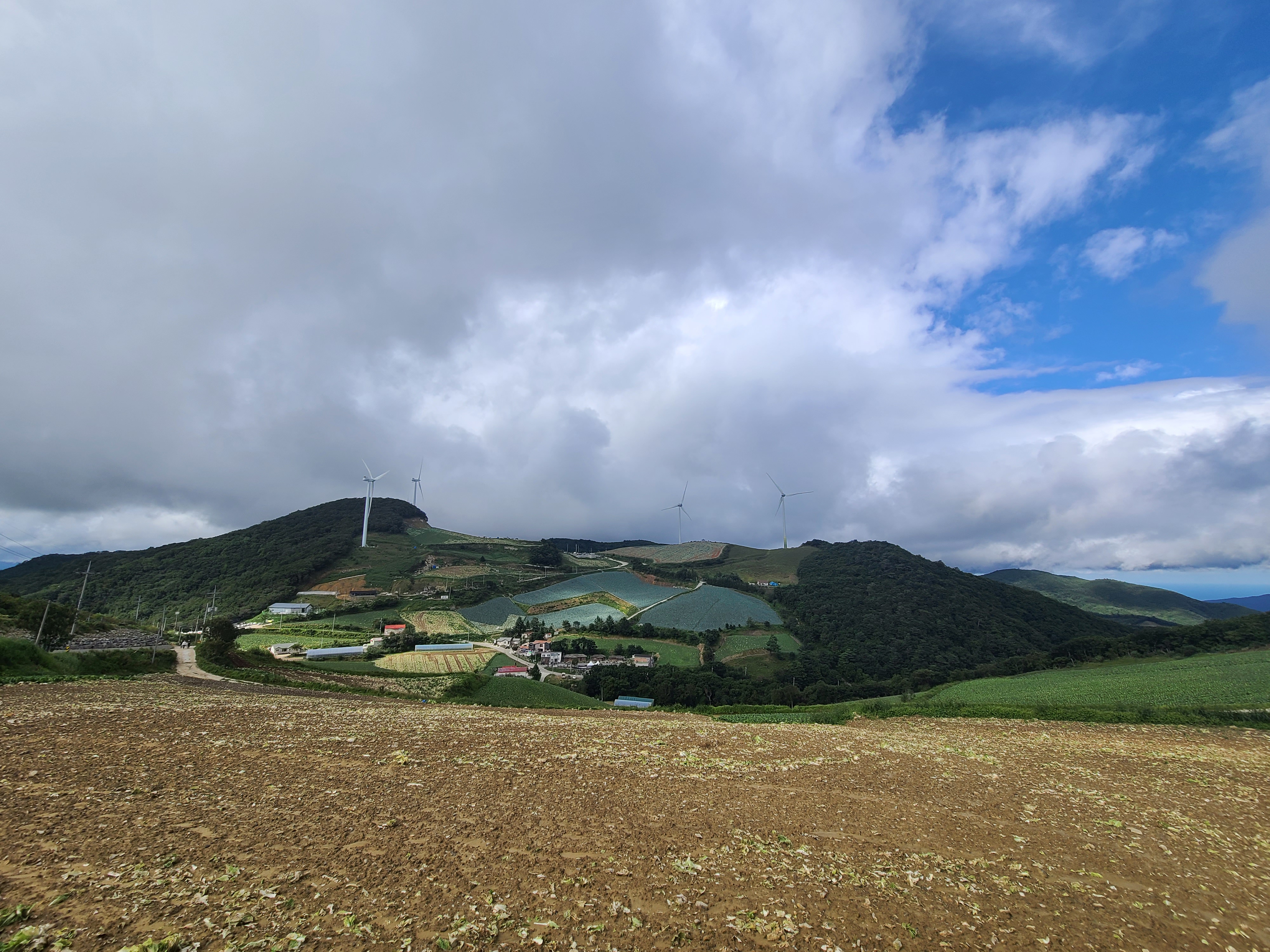 날씨 좋은 날에는 은하수를 보러 가기도 하고  고랭지 배추 밭이 푸른 초원을 보는 듯해서 더욱 아름다운 거 같다. 내가 방문한 이 날은 변덕스러운 여름 날씨 그 자체를 보여 준거 같다. 가끔은 구름에 휩싸이기도 하고 가끔은 빗방울이 떨어지기도 하고 가끔은 하늘이 보이기도 했다. 자연의 주는 아름다운 변화를 잠시 즐기며 넓디넓은 이 배추밭에 탄성이 절로 나오게 되는 거 같다. 아름다운 안반데기의 모습이다.