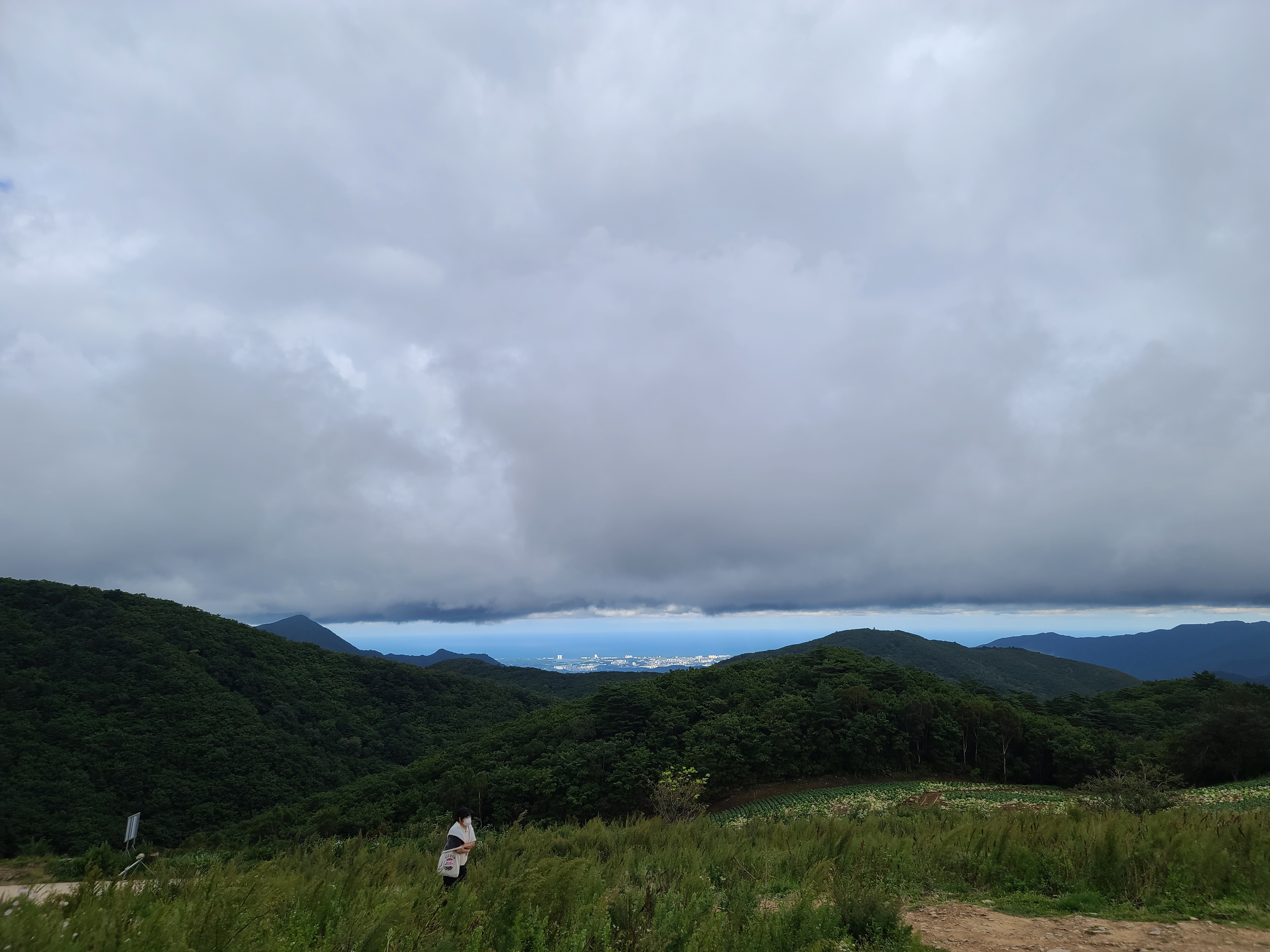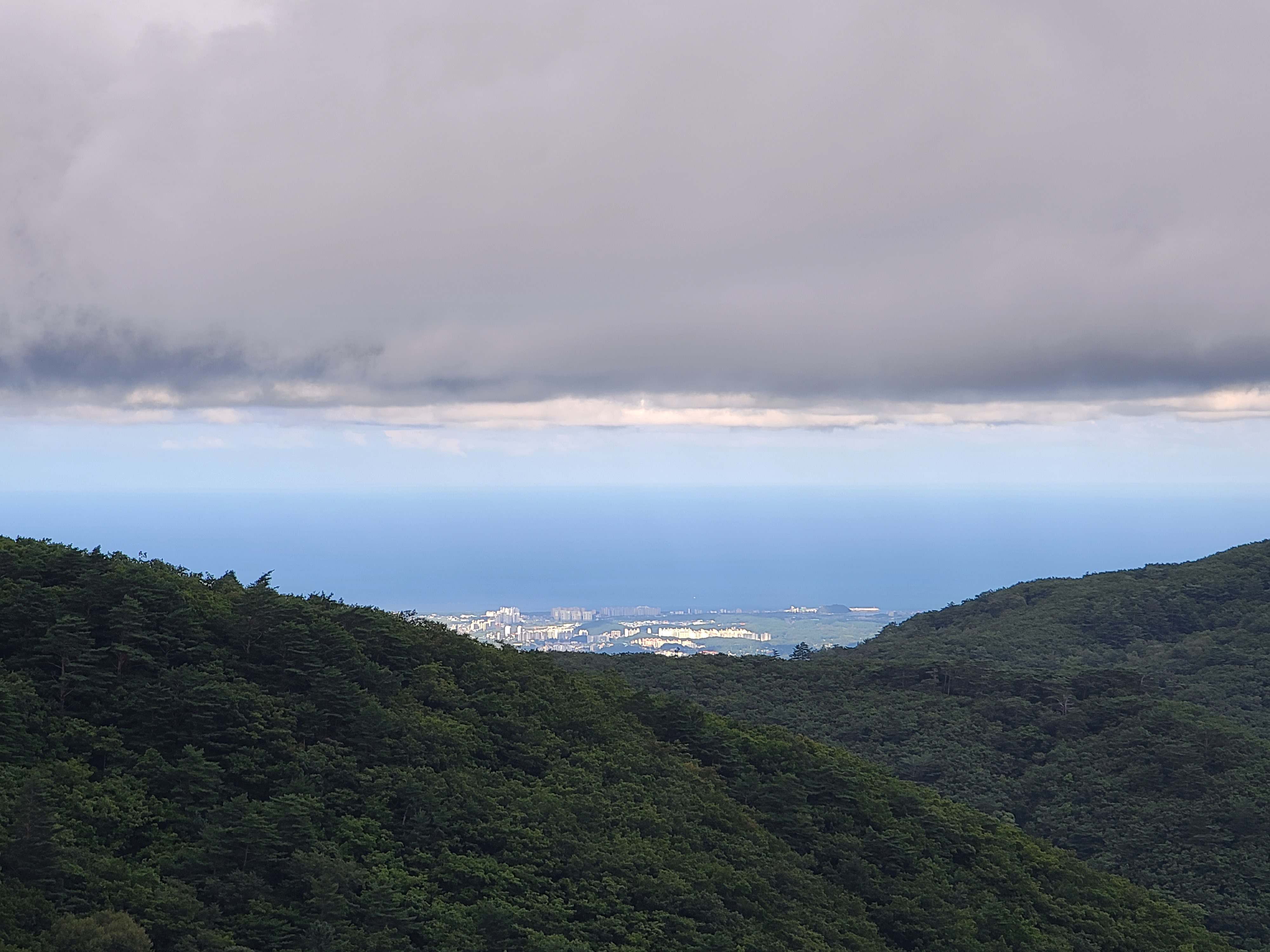 구름이 흘러 뭉쳤다가 다리 풀어지고 다시 흘러간다. 동해바다도 보이다 사라지다를 반복한다. 빼꼼히 구름아래 보이는 동해바다가 더 멋지다는 생각도 해 본다.
