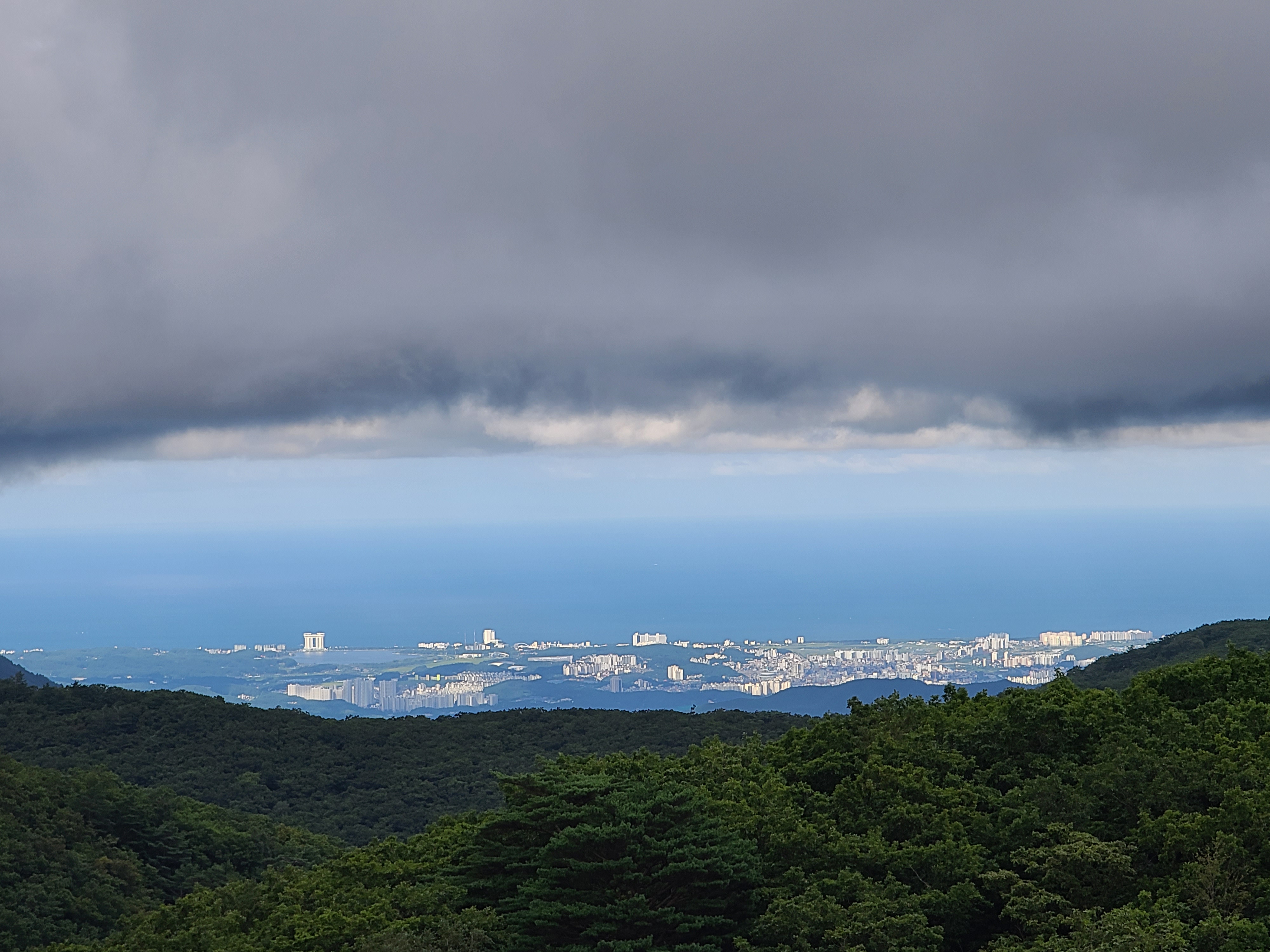 동해바다가 구름 아래 보여진다.