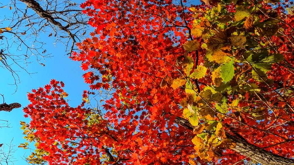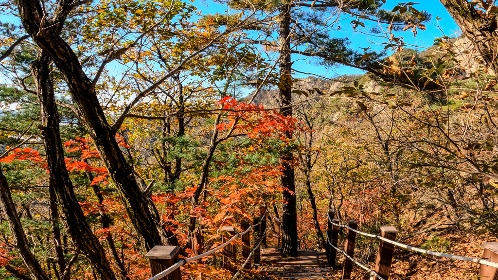 계곡에 물이 힘차게 뻗어 흐르고 단풍이 아주 예쁘게 피어올랐다. 너무 예쁘다.