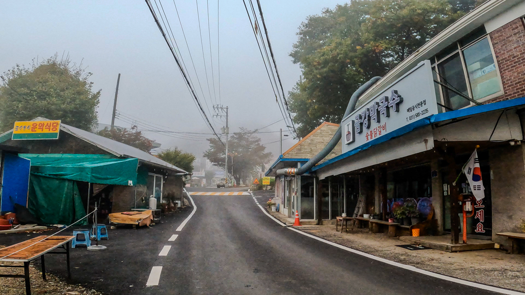 운악산 상가 지역을 지나간다. 운악산 출렁다리는 산 아래 설치가 되어 있다.