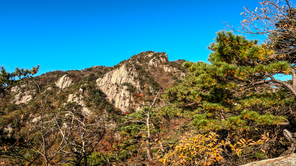 백호능선에서 바라보는 운악산 만경대 방향이다. 바위에 가을이 내려앉아 너무 예쁘다.