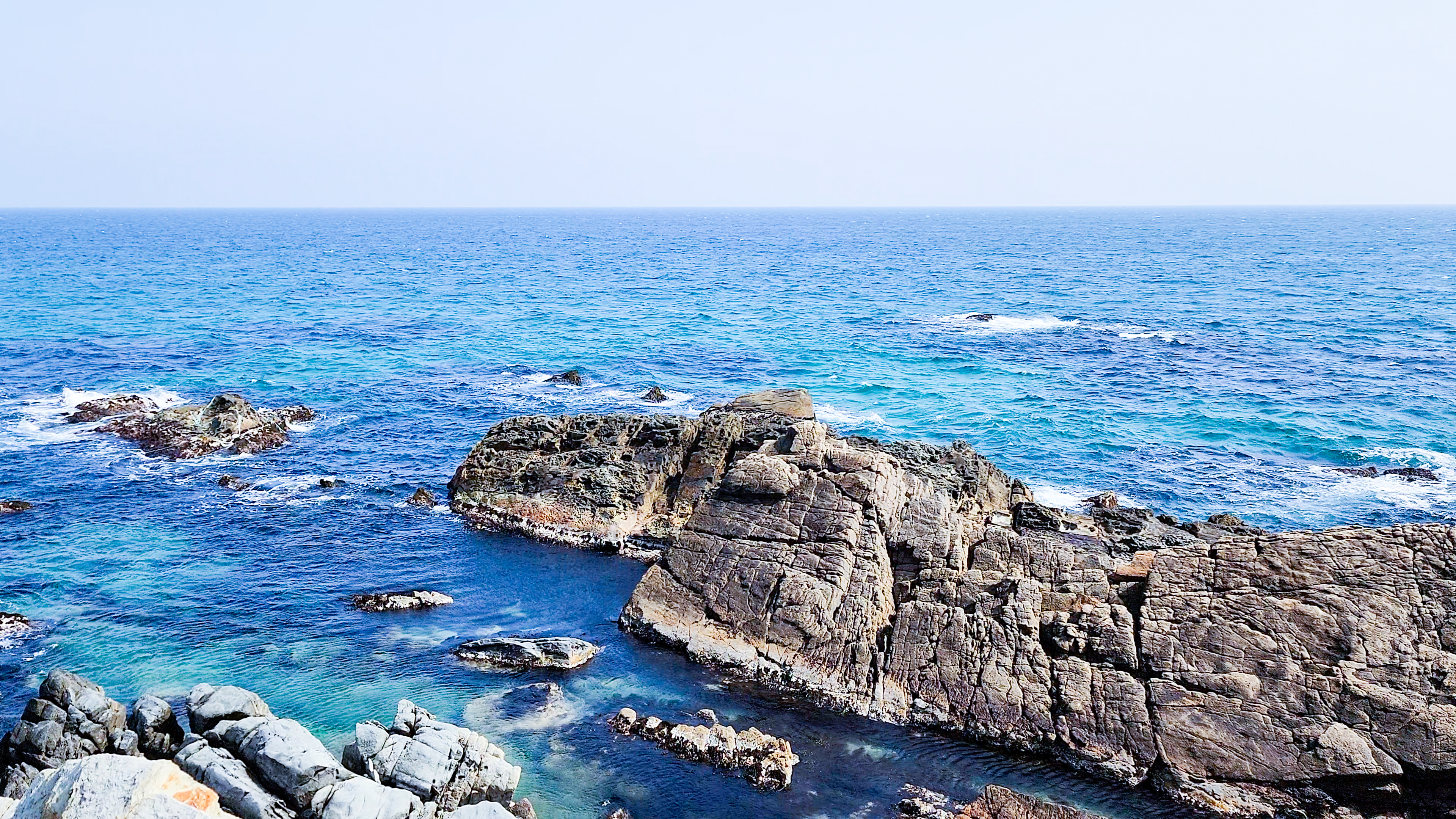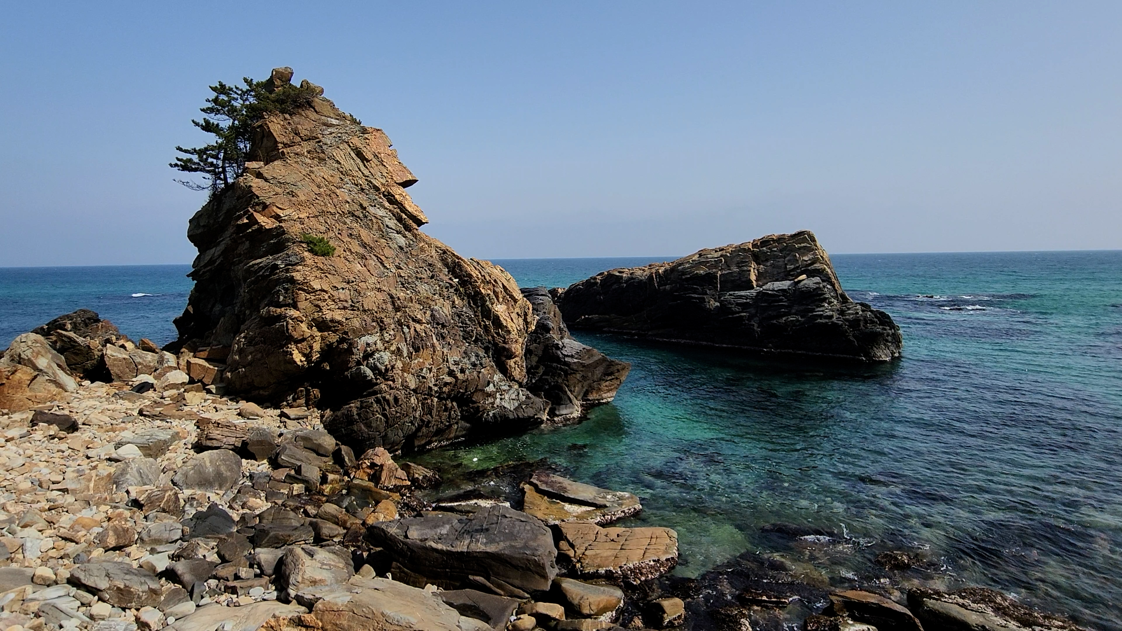 시기한 기암괴석과 푸르른 동해바다의 조망입니다.