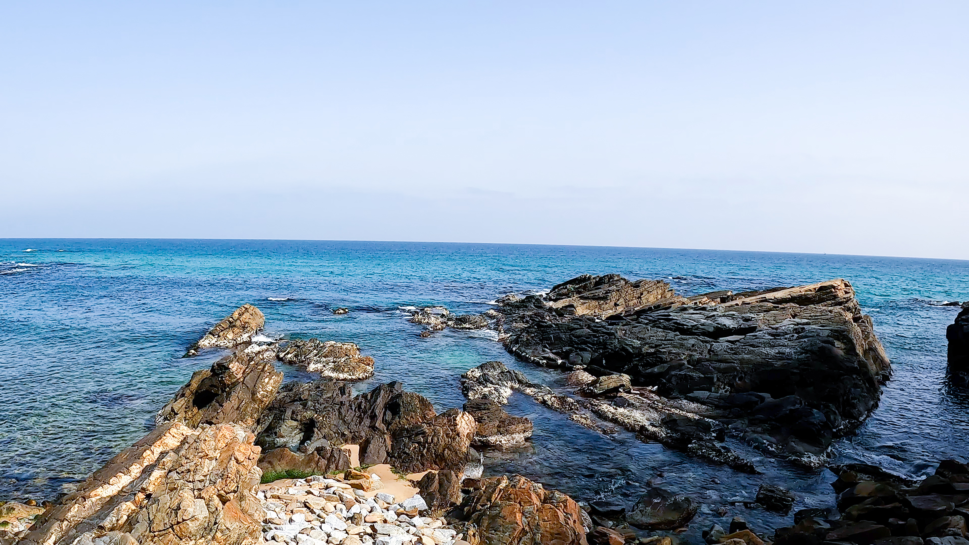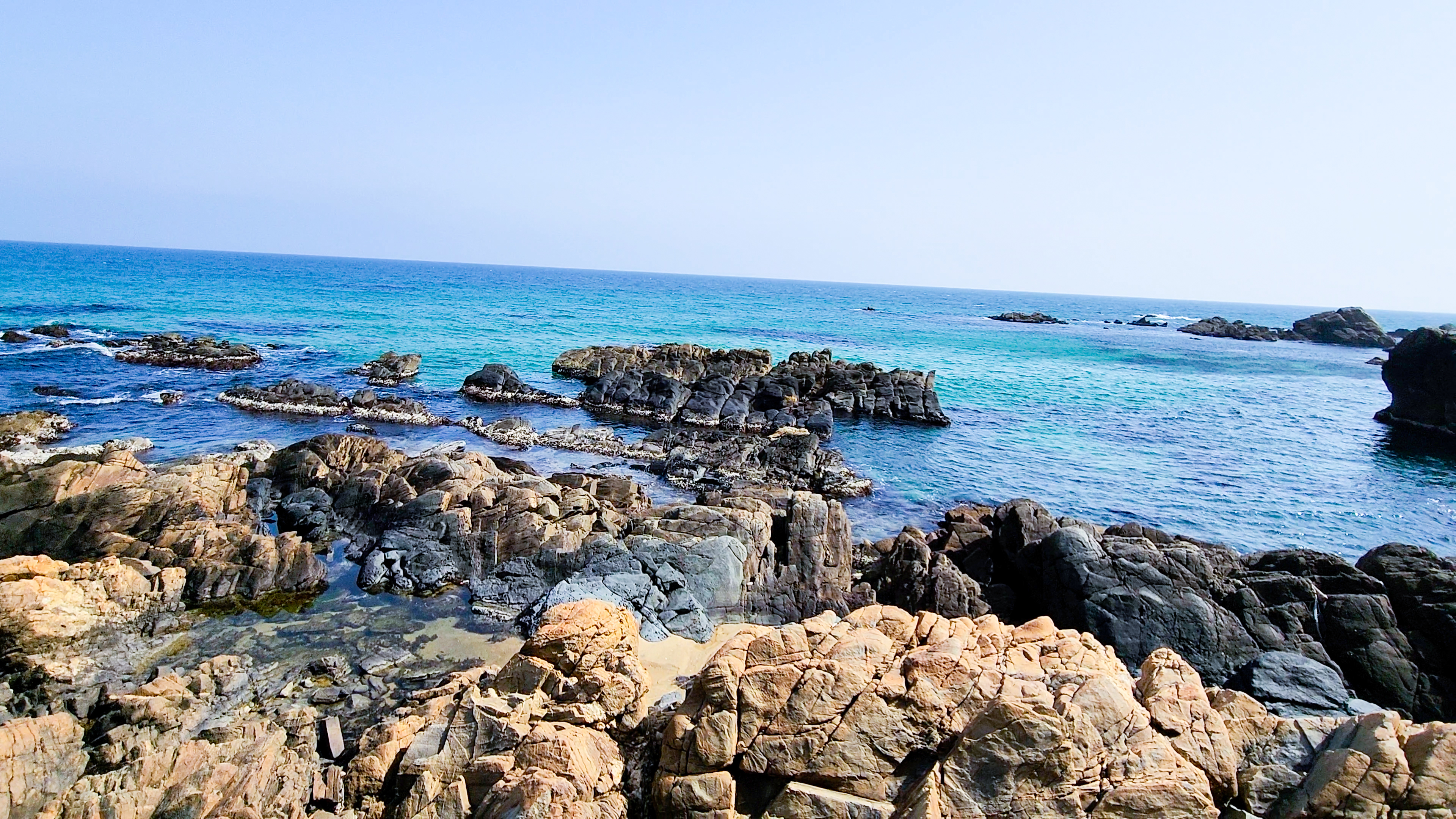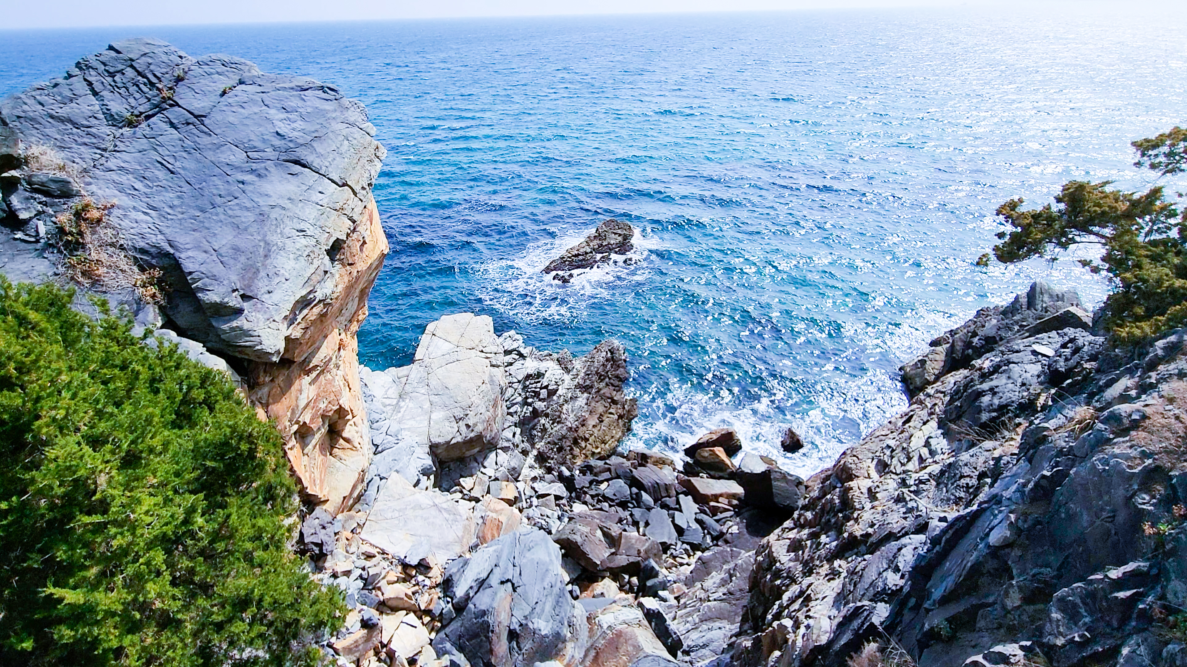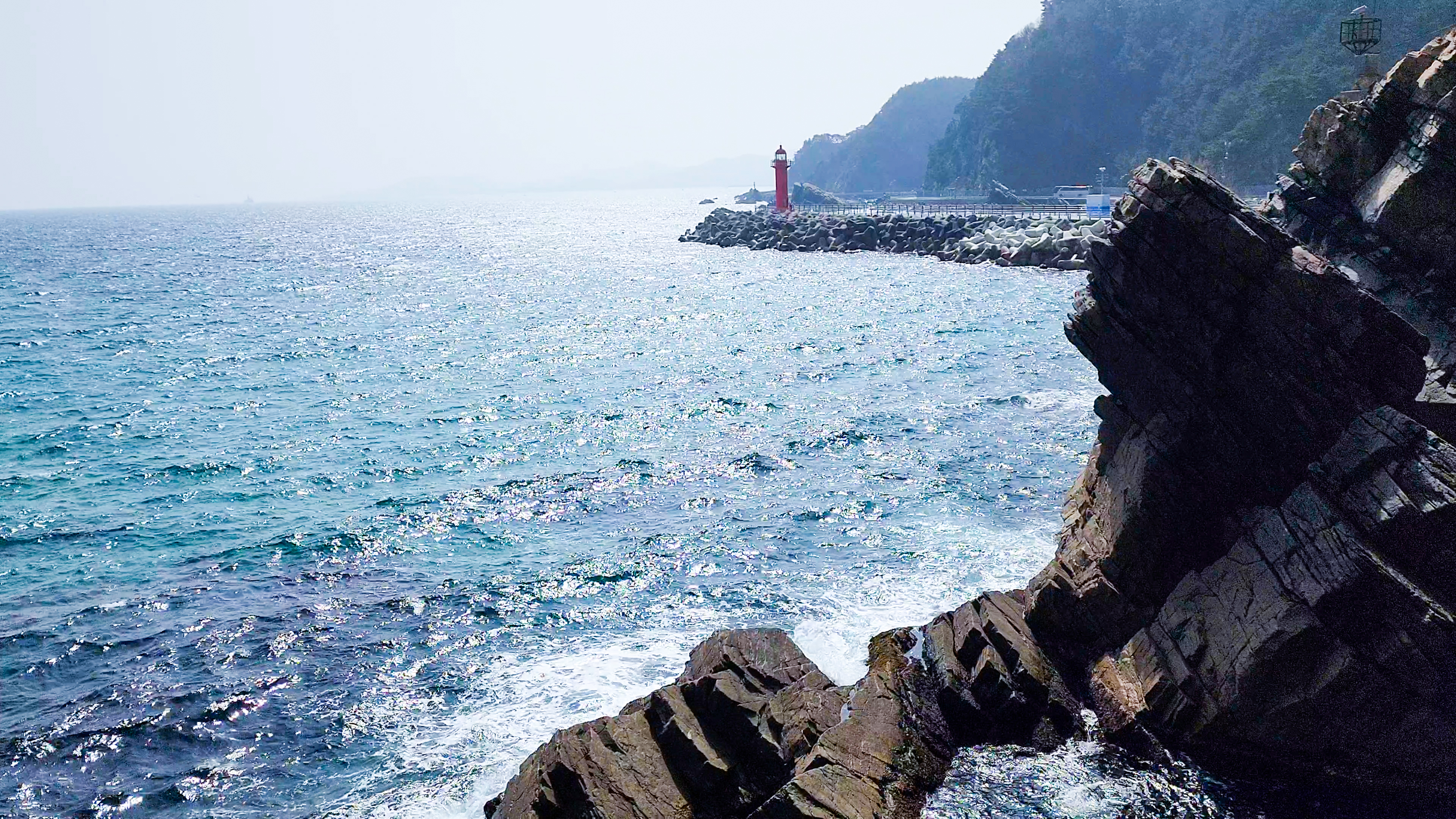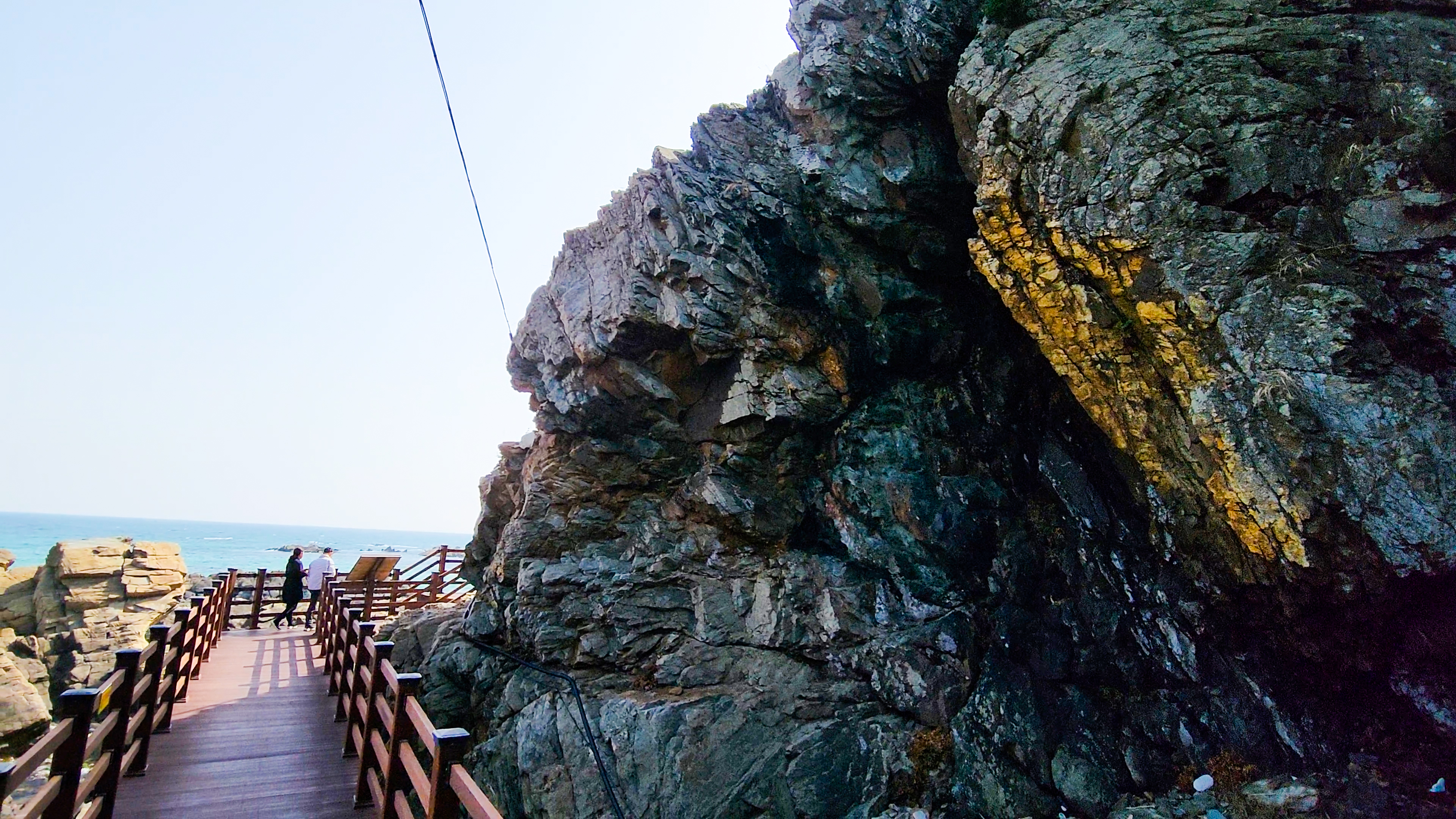 바다를 바라다 보기 전 단층 구조의 기암괴석을 잘 살펴보면 2300만 년 전 지각 변동의 여파로 생겨난