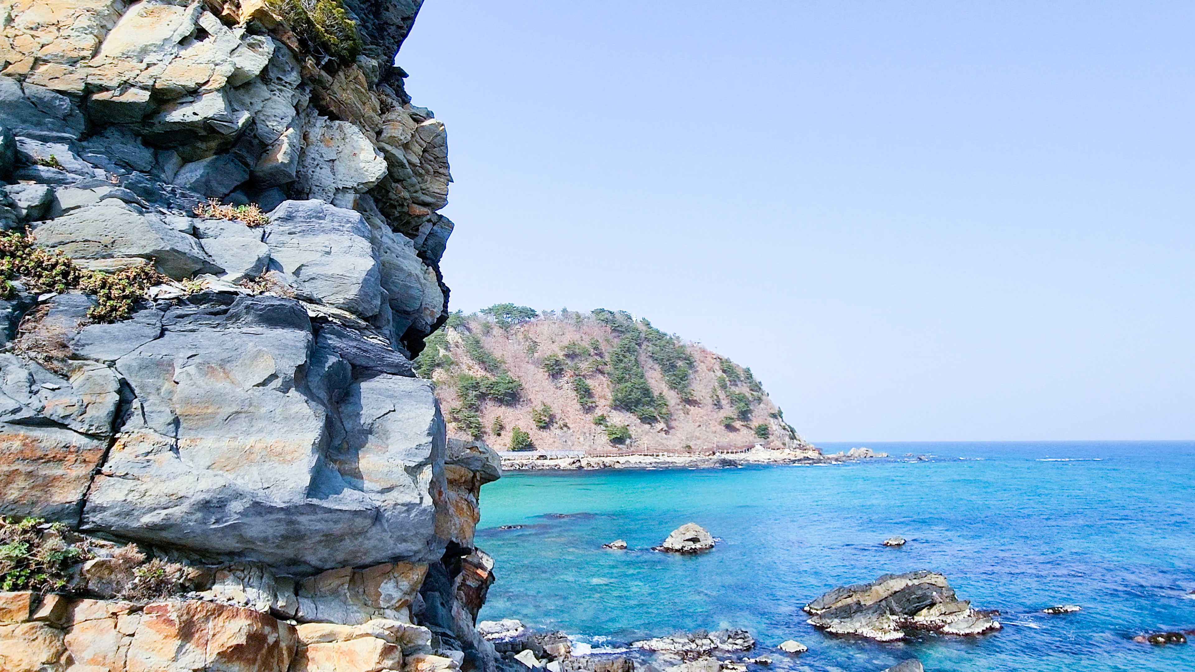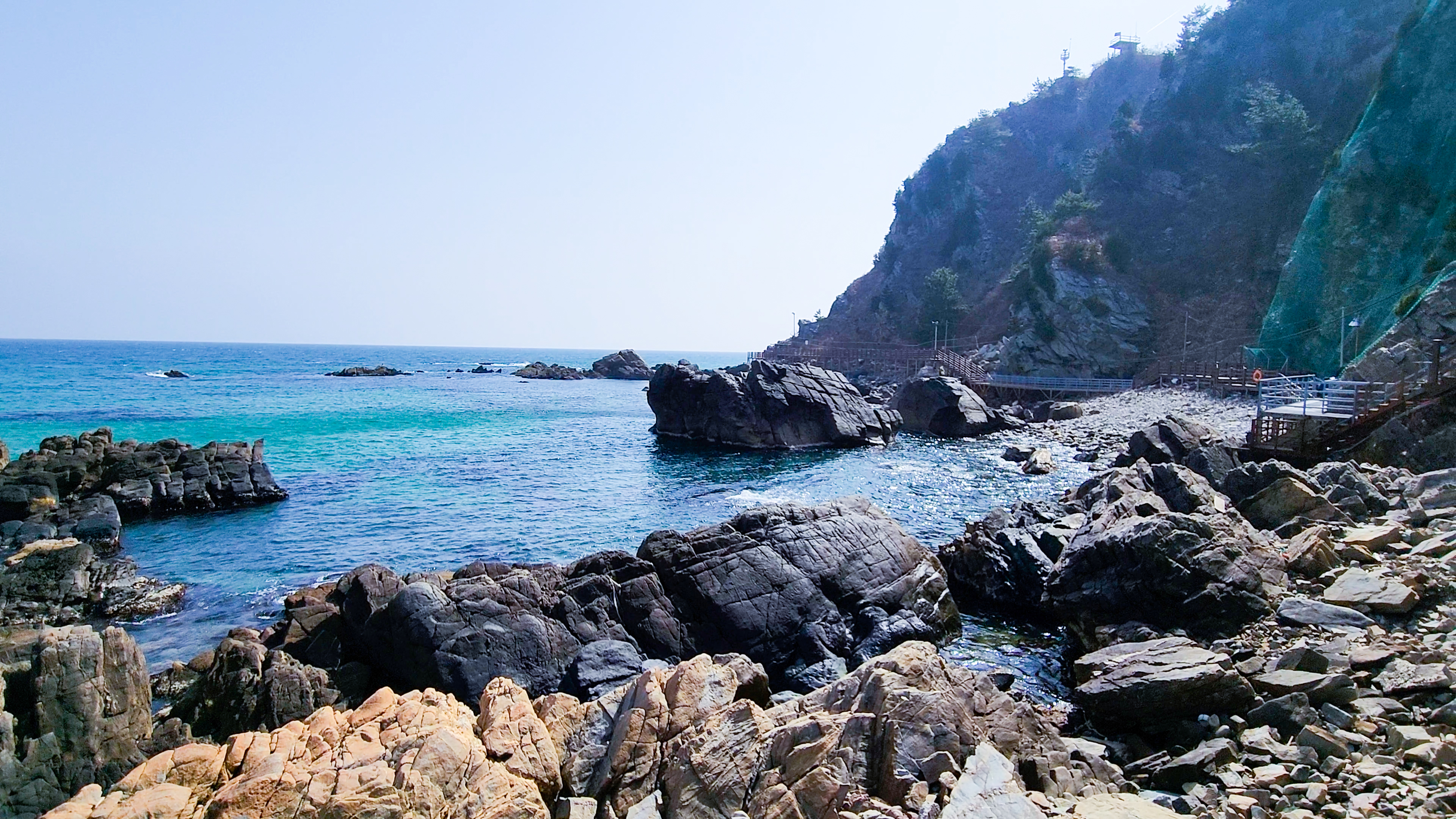 계단을 내려오면 펼쳐지는 동해바다의 옥빛 색을 만나게 됩니다. 너무 도 환상적인 아름다움을 간직하고 있습니다.