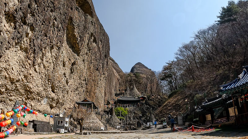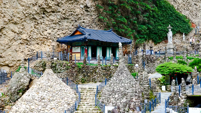 2. 암마이봉 아래 위치한 마이산 탑사 : 마이봉의 웅장함 아래 탑사가 있다. 마이봉의 여름철 비가 내리면 마이봉에서 물이 내려와 폭포를 이룬다.