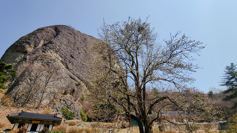 암마이봉에서 물이 내려와 폭포처럼 보인다.