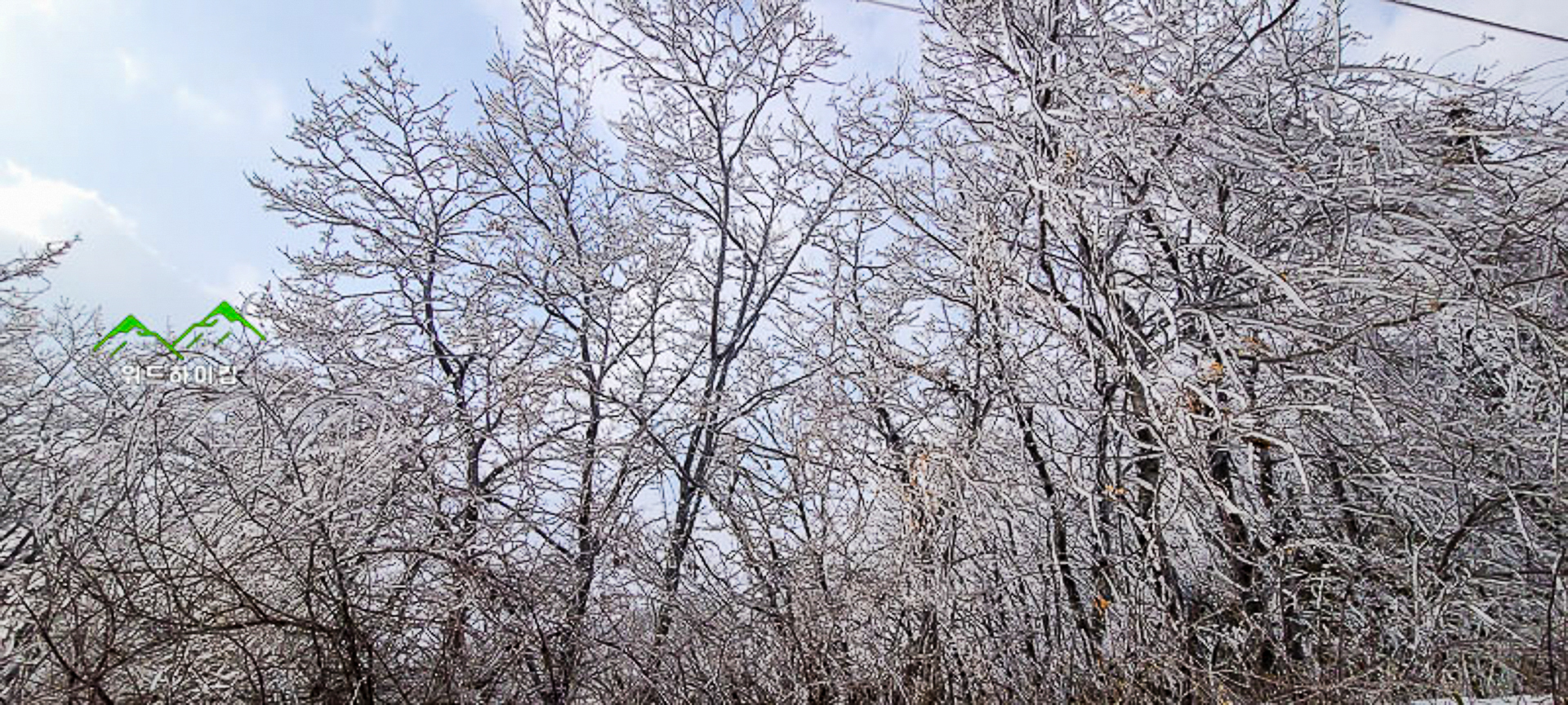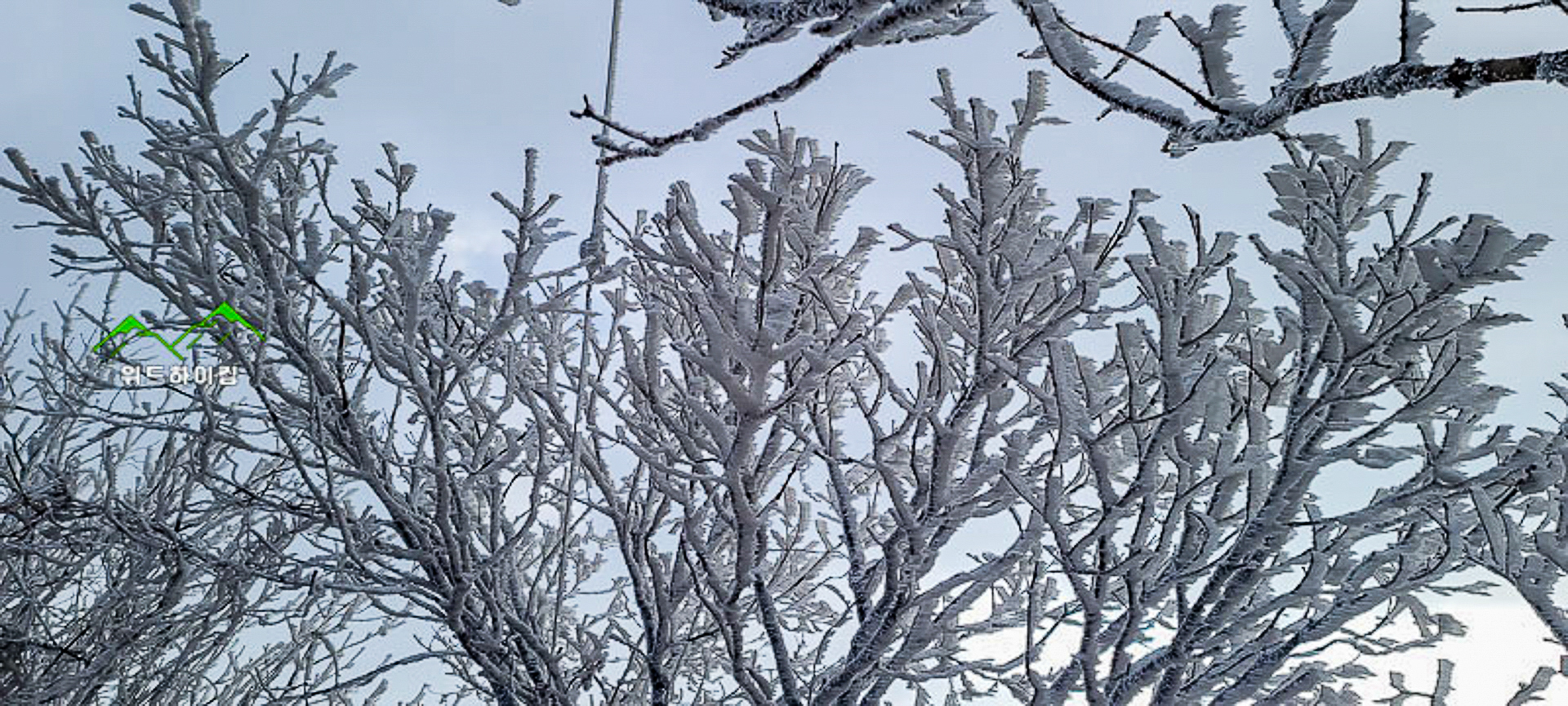다양한 나무들이 눈꽃으로 피어올라 있다. 봄과 여름의 야생화 그리고 가을의 다양한 색의 산도 아름답지만 겨울산의 눈꽃 매력은 겨울을 풍성하게 만드는 것 같다.