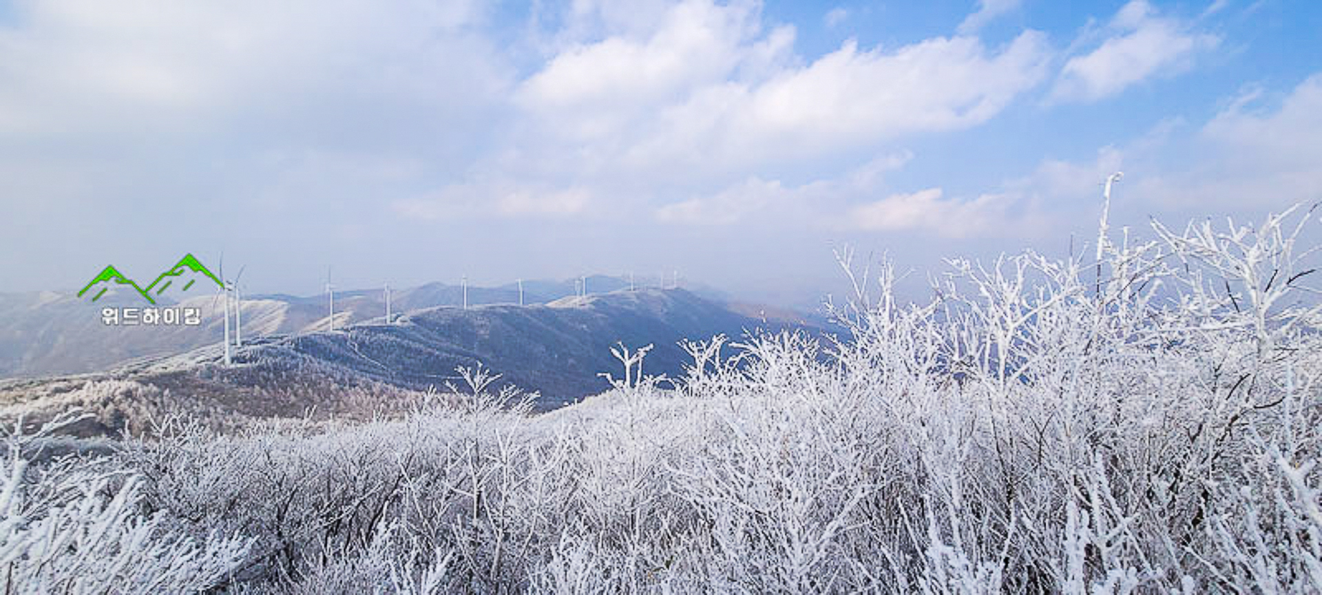 태기산은 눈꽃과 상고대가 아름다운 산이다. 상고대가 피어오르면 아름다운 빙화를 만날 수 있는 산이다. 임도 길을 통해 걷는 태기산은 큰 어려움이 없는 트래킹 코스이다. 하산 길에 눈썰매를 경험할 수도 있고 풍력발전기는 눈꽃이 핀 태기산은 아름다운 모습을 더욱 풍성하게 한다.