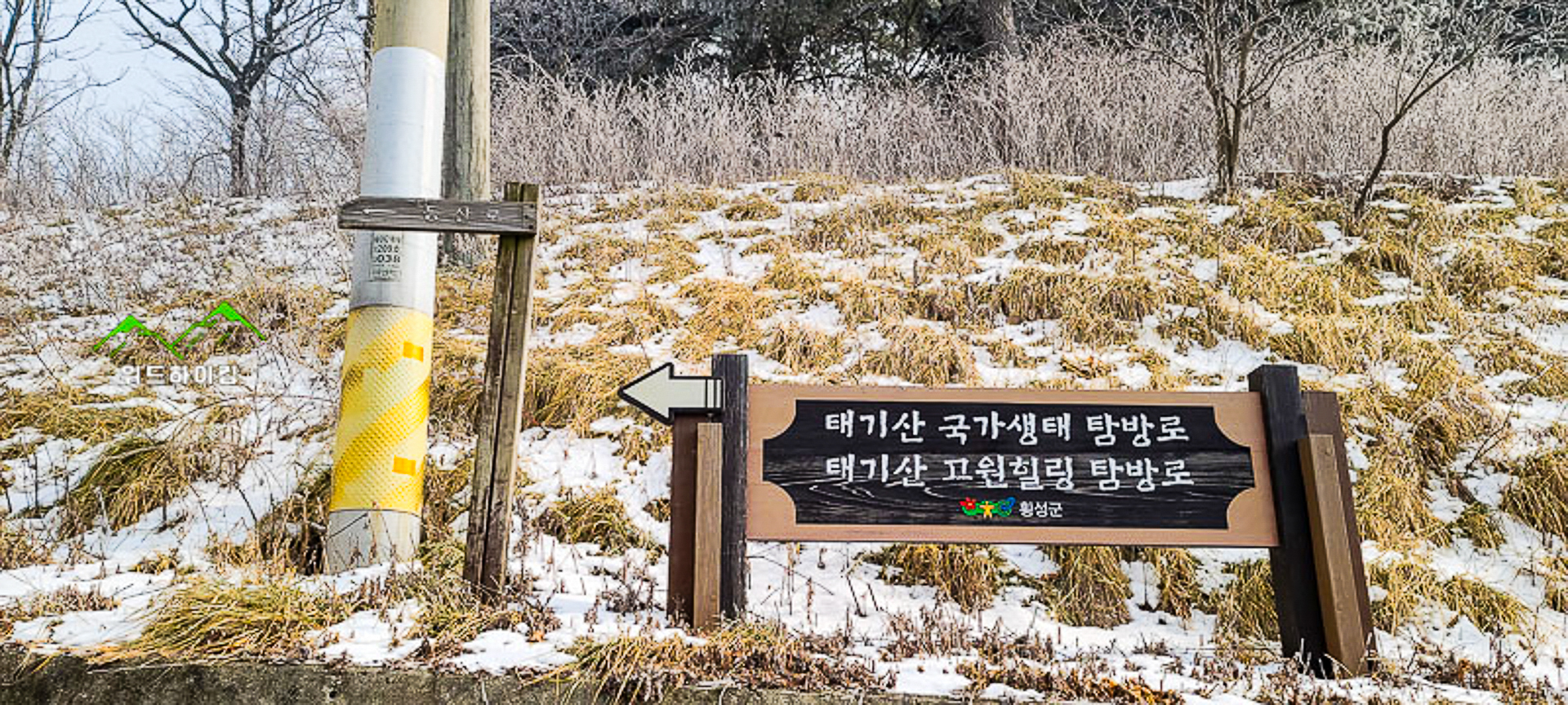 양구두미재까지 차로 오르는 길은 굽이진 길을 올라야 한다. 조심스럽게 안전운전을 하며 오른다. 주차공간이 별도로 없다. 경찰전적비, 무이쉼터 갓 길에 주차 후 태기산 여행을 시작한다. 한 겨울 늦은 시간에는 주차 공간이 없을 수 있다.