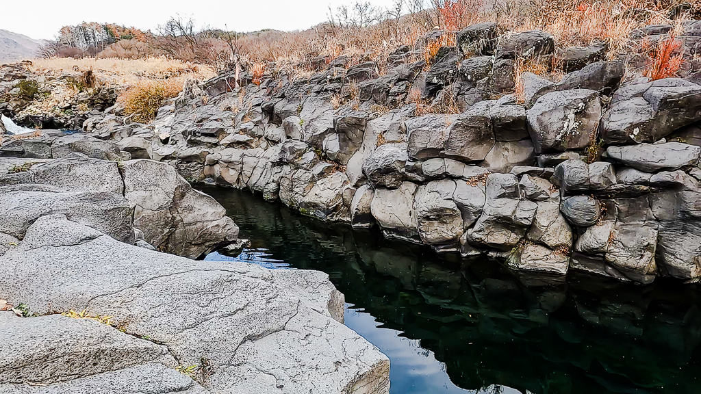 교동가마소와 구라이골은 지천으로 흘러들어온 용암이 굳어 만들어진 주장절리인데 작은 지천의 주상절리를 만나보는 것도 참 좋은 선택이라 생각합니다.