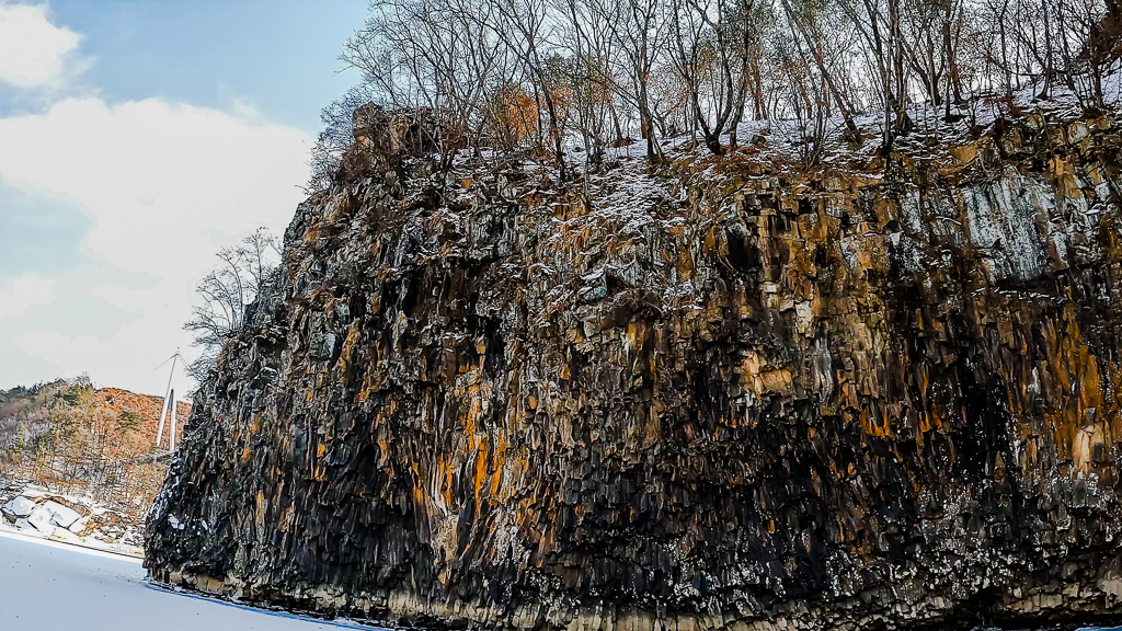 30~40m 높이의 장엄한 절벽의 주상절리입니다. 철원경 중 제8경에 속하는 송대소는 물윗길의 시작과 함께 웅장하게 만나게 되는 장소입니다. 은하수교 아래에 있습니다.