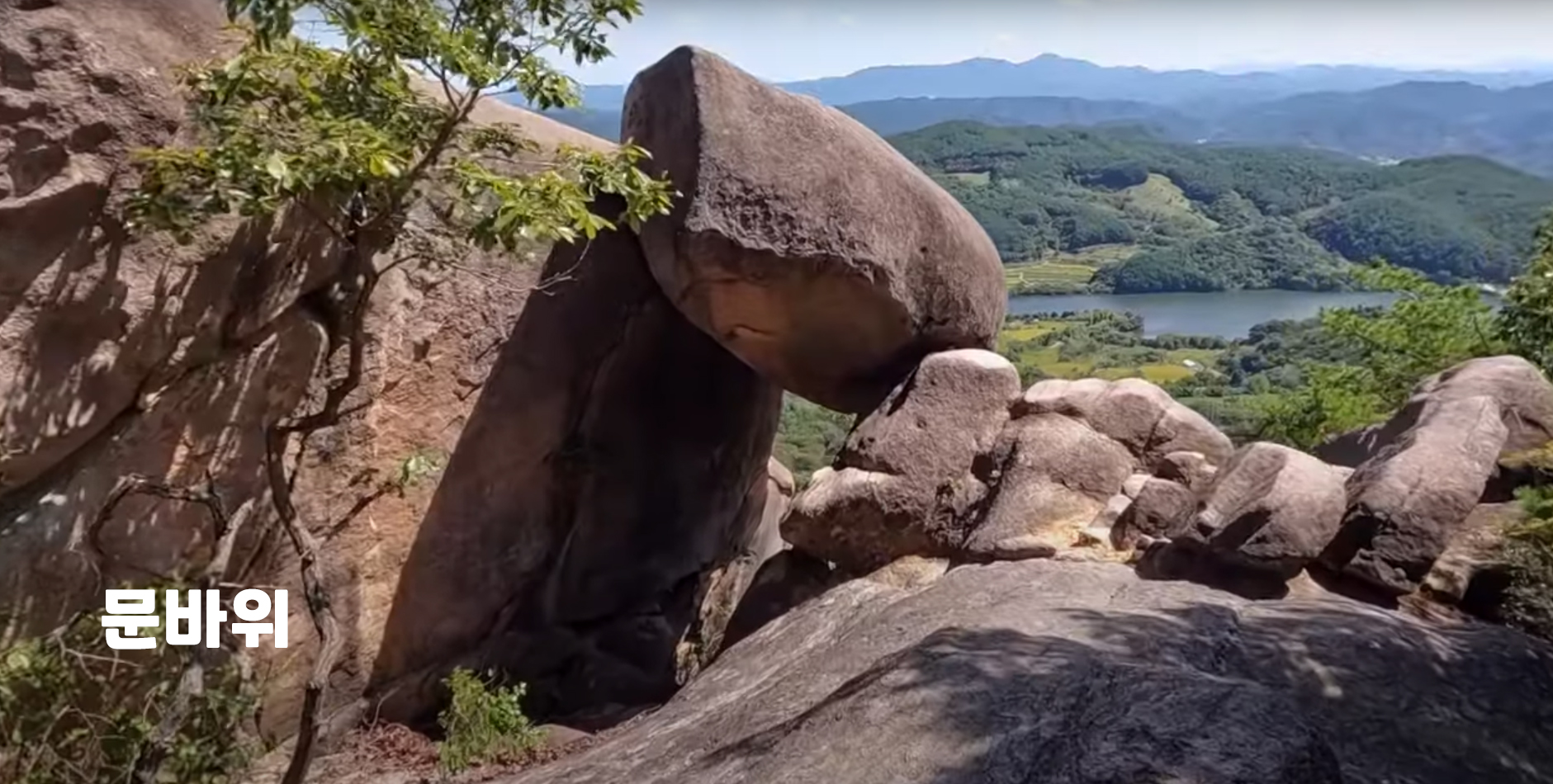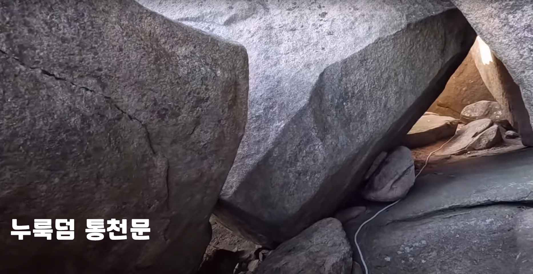 누룩덤 아래 통천문이 있다. 이 장소를 통과한다. 누룩덤이 그만큼 큰 바위이다.