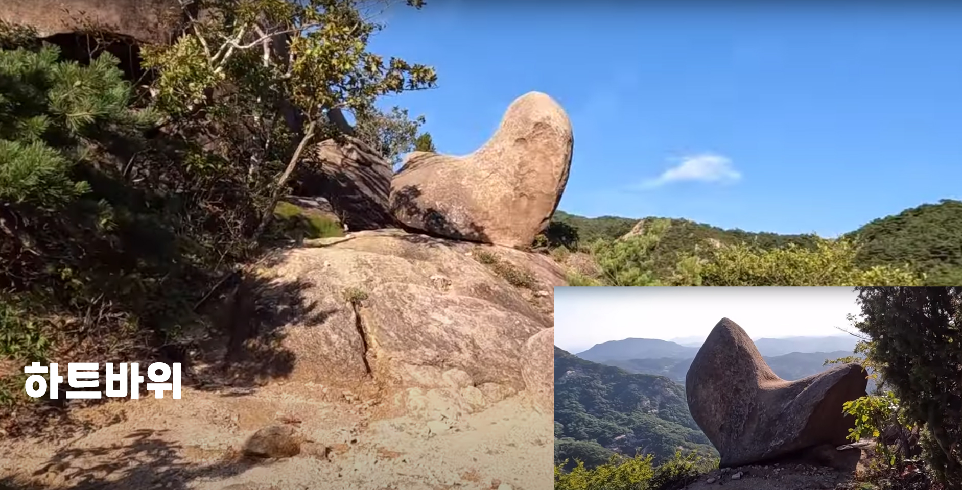 오늘 코스는 다양한 바위들이 있다. 하트바위는 앞면과 뒷면을 만나게 되고 하트바위 위에 오르고 사진을 찍으면 멋진 사진 촬영이 가능하다.
