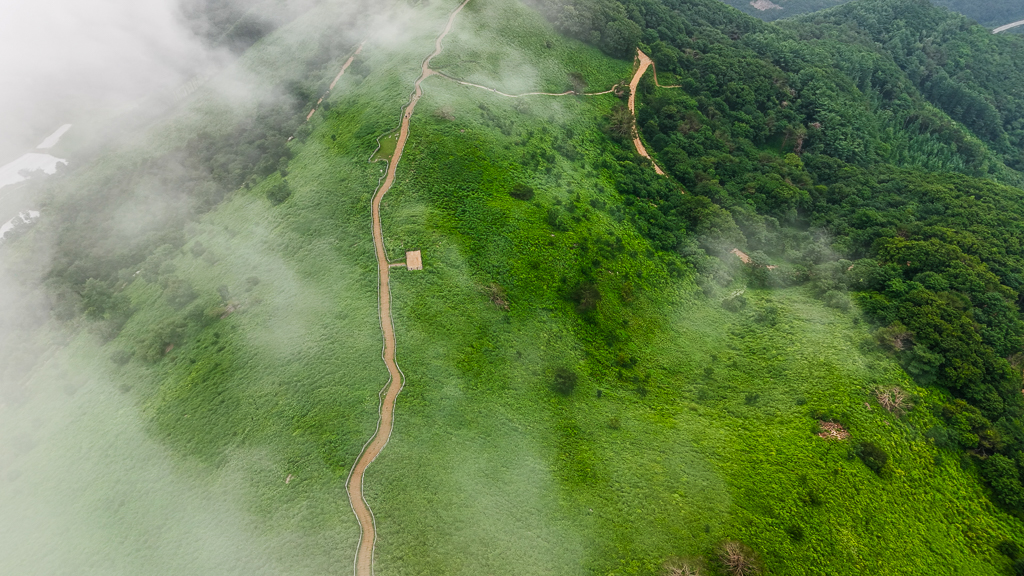 걷다가 연무가 얼굴에 부딪치고 바람이 땀을 마르게 한다.